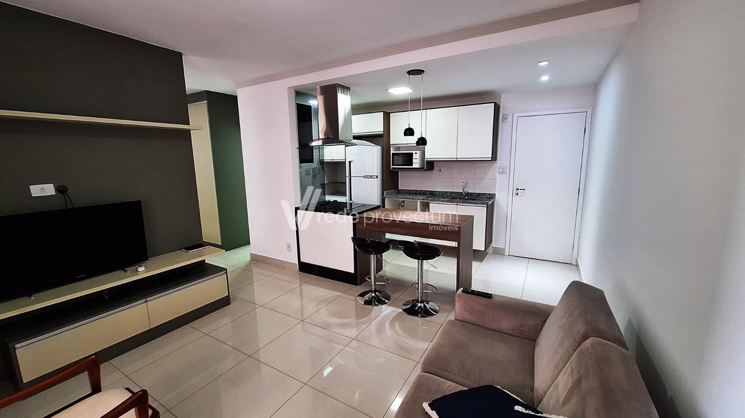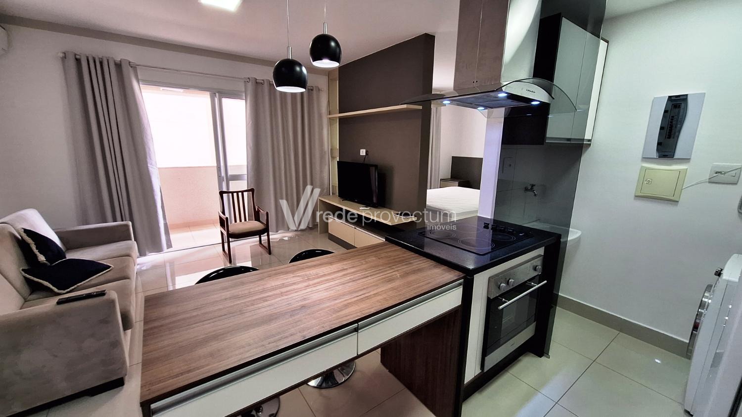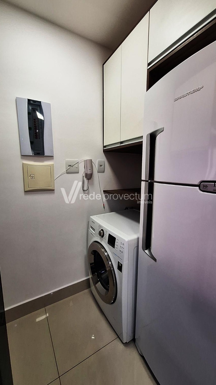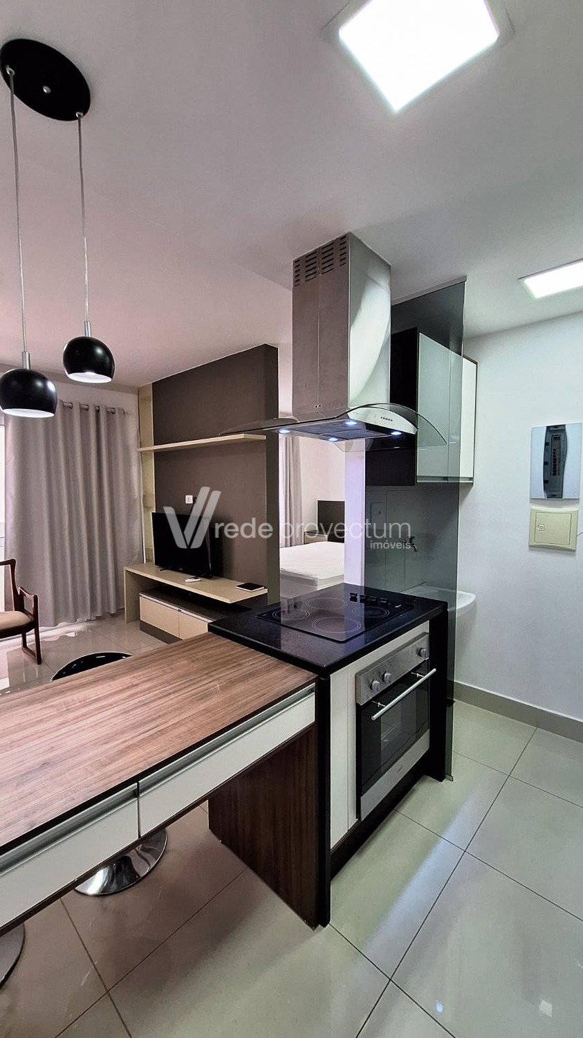 Apartamento mobiliado para locação, estilo loft, 47m² muito bem distribuídos, em um condomínio novo e moderno. Ótima localização, rua tranquila, bairro Botafogo, fácil acesso a região central de Campinas, ao lado do bairro Guanabara, próximo ao Cambuí, região com fácil acesso a mercados, hospitais, bares, farmácias e variados tipos de conveniências. Ambientes totalmente integrados, mobiliário novo em excelente estado de conservação distribuídos da seguinte forma: 1 espaçosa sala com sofá, cortina, rack, tv, ar-condicionado que atende todos os ambientes e sacada com sol da manhã, 1 cozinha planejada completa com vários armários, integrada com a sala e equipada com bancada para refeições e banquetas, cooktop de indução com 4 bocas, forno elétrico, coifa, forno micro-ondas e geladeira duplex, Lavanderia separada da cozinha com blindex, tanque, armário planejado, máquina de lavar, Quarto com cama de casal e cabeceira e espelho lateral, armário roupeiro planejado, banheiro espaçoso com armário e box Blindex, com aquecimento no chuveiro, 1 Vaga de garagem livre no subsolo. A área de lazer é fantástica e completa, contendo área gourmet com churrasqueira para reunir amigos, lounge, piscina aquecida com raia de 25 metros coberta, playground, salão de festas, academia fitness, amplos corredores nas laterais do prédio. Portaria com controle virtual e segurança 24 horas. Para maiores informações, entre em contato com nossos corretores.