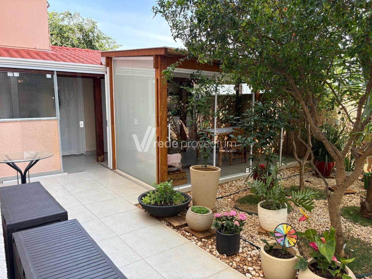 Apartamento térreo com 3 dormitórios e 1 suíte no condomínio Pátio das Alamedas no Parque Prado, térrea com 80 m², mais um quintal privativo com 90 m², com churrasqueira com banheiro e jardim, tem ar condicionado e aquecimento a gás nos banheiros e cozinha.