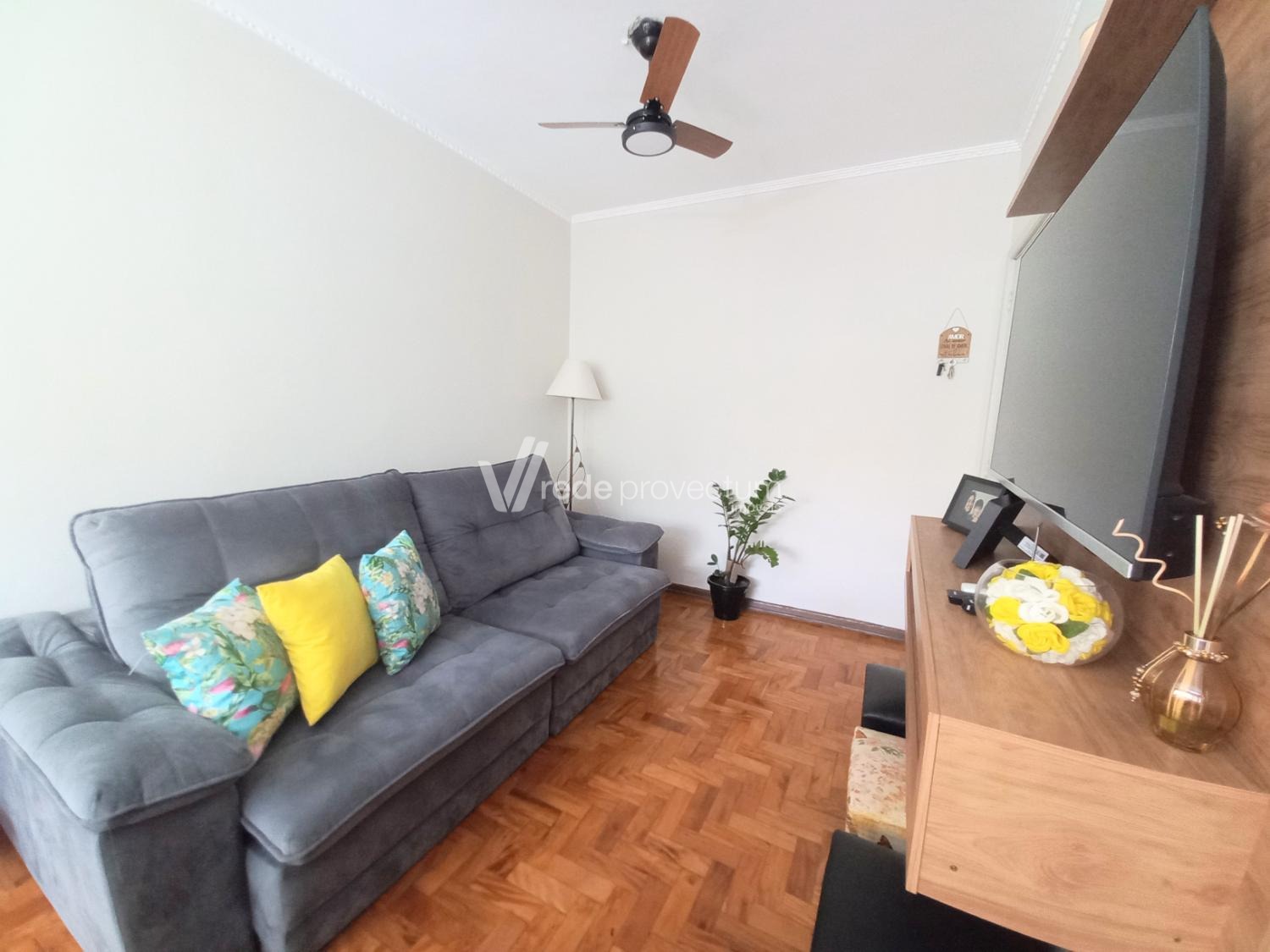 Apartamento com 3 dormitórios à venda no Bairro Jardim Garcia em Campinas, local de fácil acesso à malha viária, condomínio com toda infraestrutura e segurança e lazer, 3 dormitórios com armários, banheiro social, cozinha planejada, área de serviços, sala para 2 ambientes e 1 vaga de garagem. Portaria virtual. Aceita financiamento.