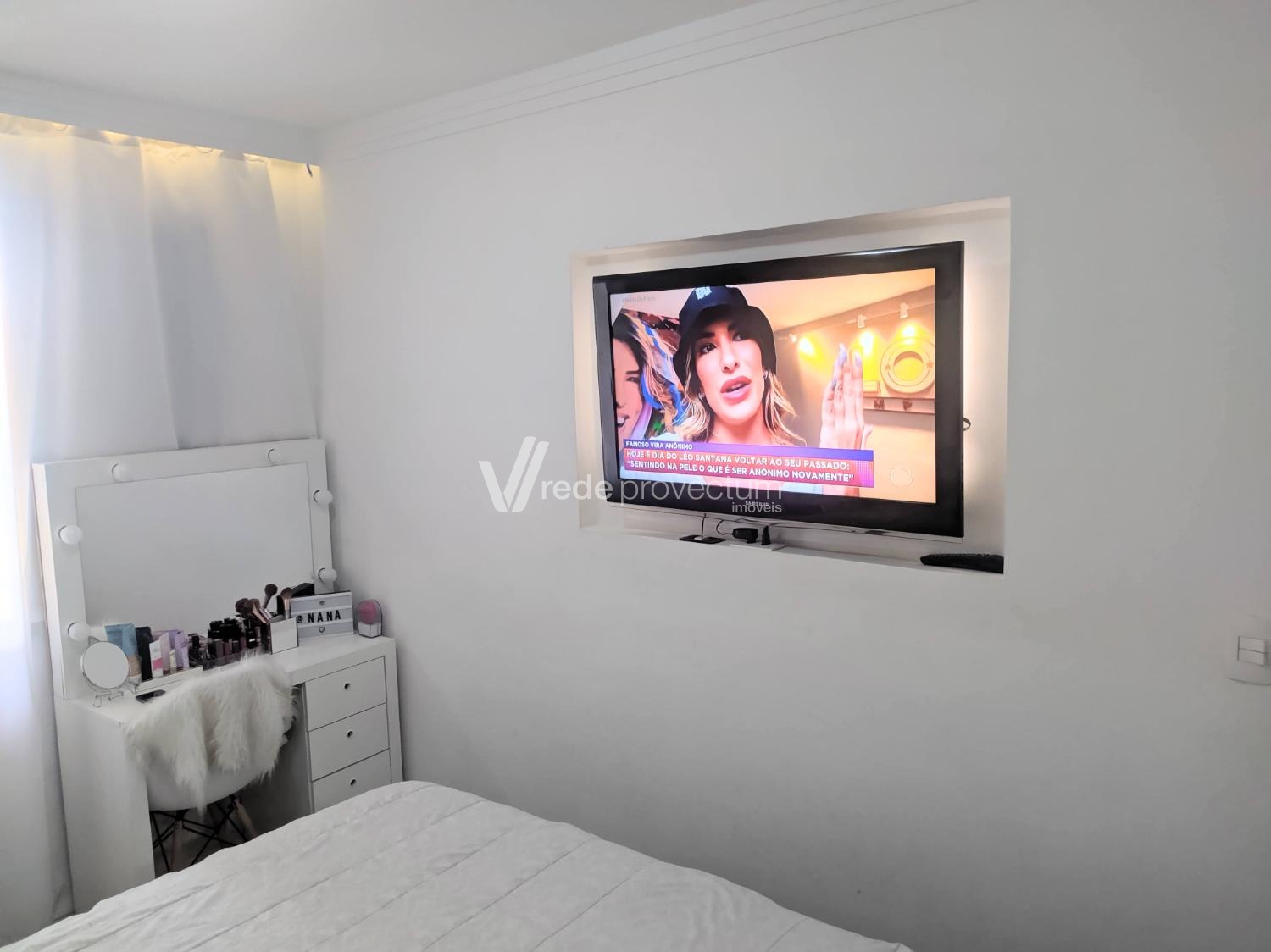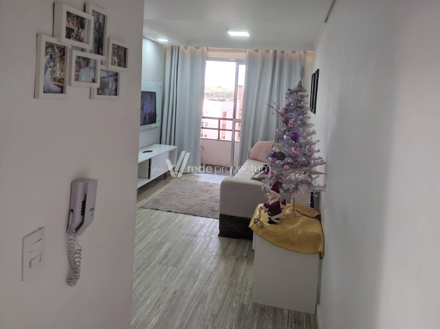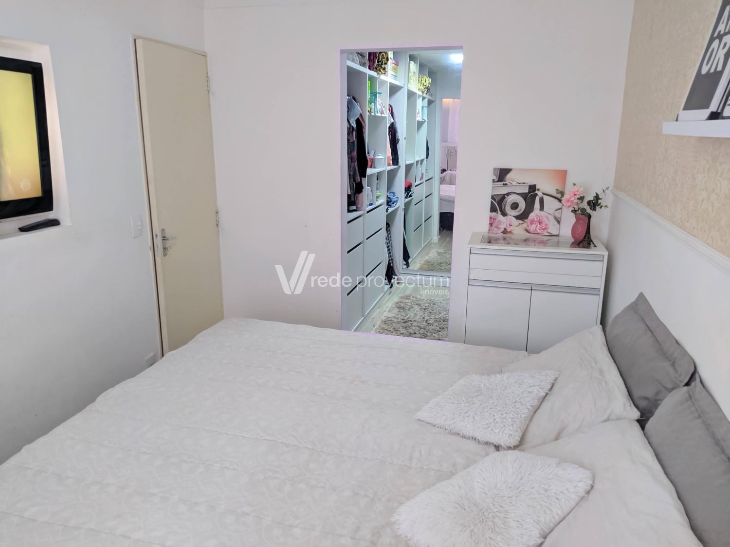 Apartamento à venda no Recanto do Sol, em Campinas/SP, com 3 dormitórios (sendo 1 revertido em closet planejado com espelho do chão ao teto), piso vinílico laminado em todo o imóvel, sala para 2 ambientes com sanca em gesso e cortineiro com LED, sacada, nicho de TV em um dos quartos, cozinha com cooktop e armário, banheiro social, gás encanado e 1 vaga de garagem coberta. O condomínio oferece portaria 24h, sistema de câmeras, playground, quadra poliesportiva, salão de festas e mercadinho interno. Localizado próximo à Avenida Ruy Rodrigues, com fácil acesso a shopping, escolas, supermercados, padarias, transporte público e amplo comércio local.