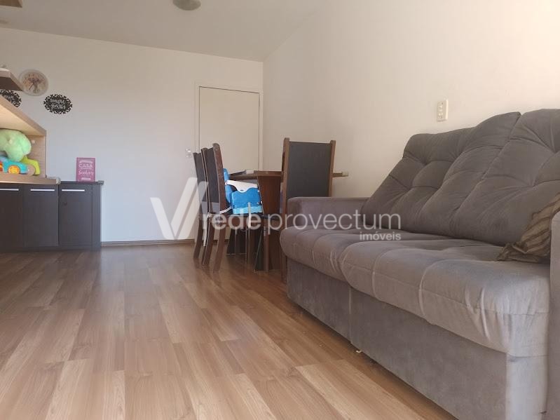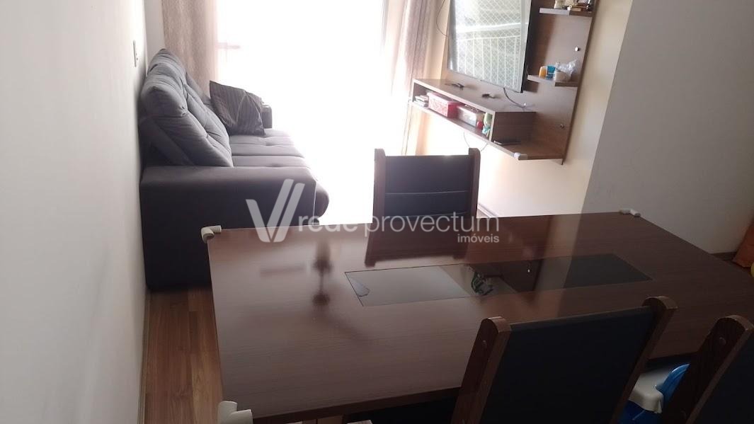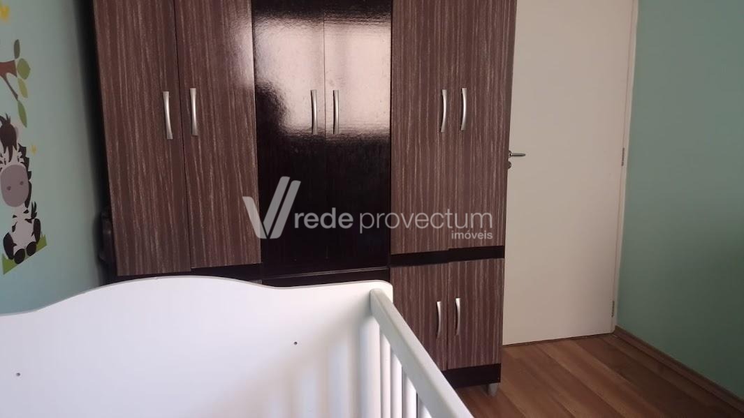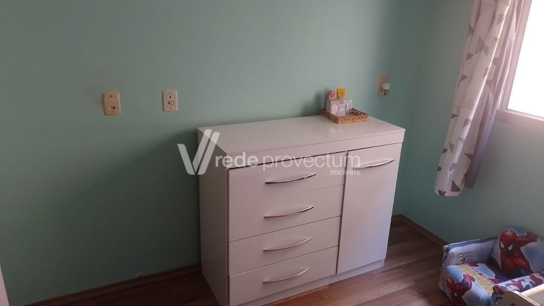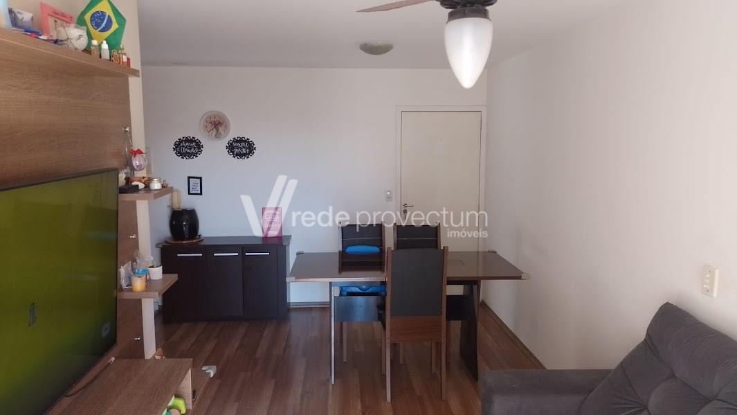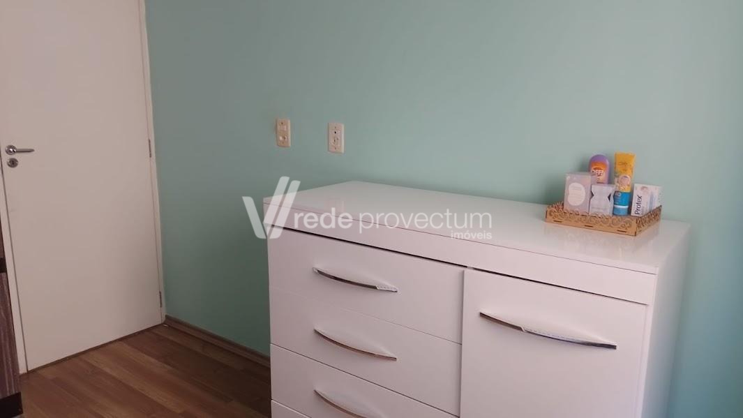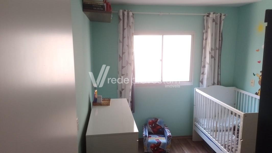 Excelente apartamento todo em piso frio. Sol da Manhã. Completo em Armários. 2 dormitórios, living para 2 ambientes com sacada, cozinha com passa pratos, banheiro social, área de serviço, 1 vaga de garagem coberta. Condomínio arborizado. Área de lazer com 4 churrasqueiras, playground, salão de festas, portaria virtual. Ponto de ônibus em frente. Ótima localização com fácil acesso às rodovias Anhanguera e Dom Pedro, próximo a 3 grandes supermercados, à faculdade Puc-Campinas , Unicamp, ao hospital Madre Theodora e ao Shopping dom Pedro.