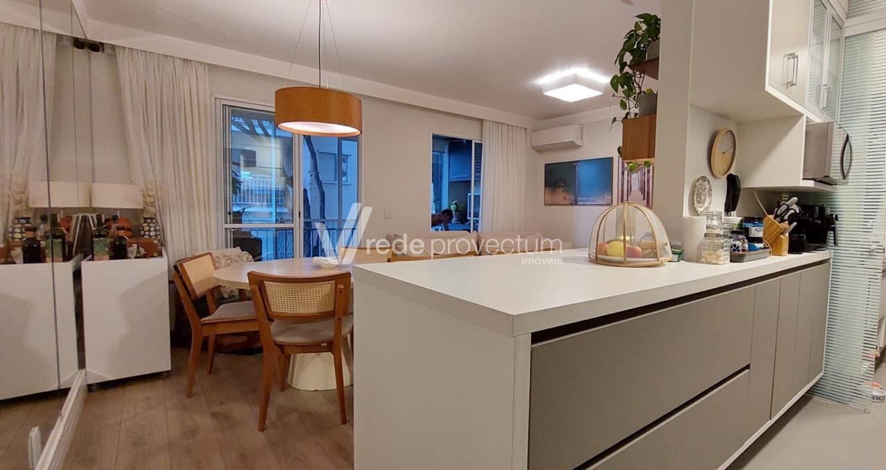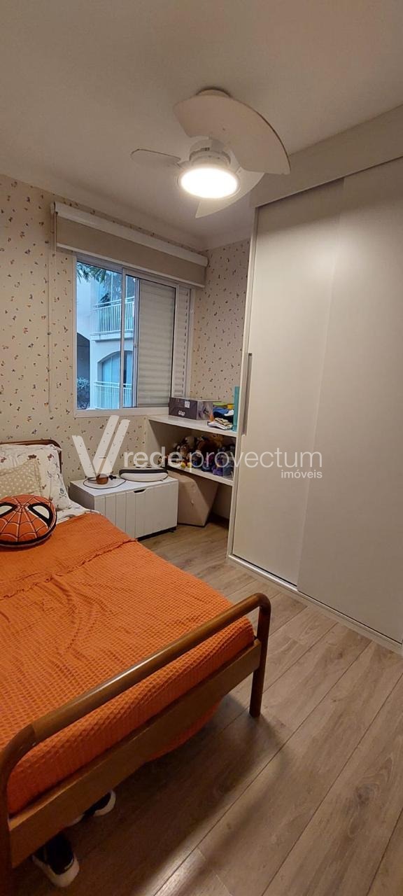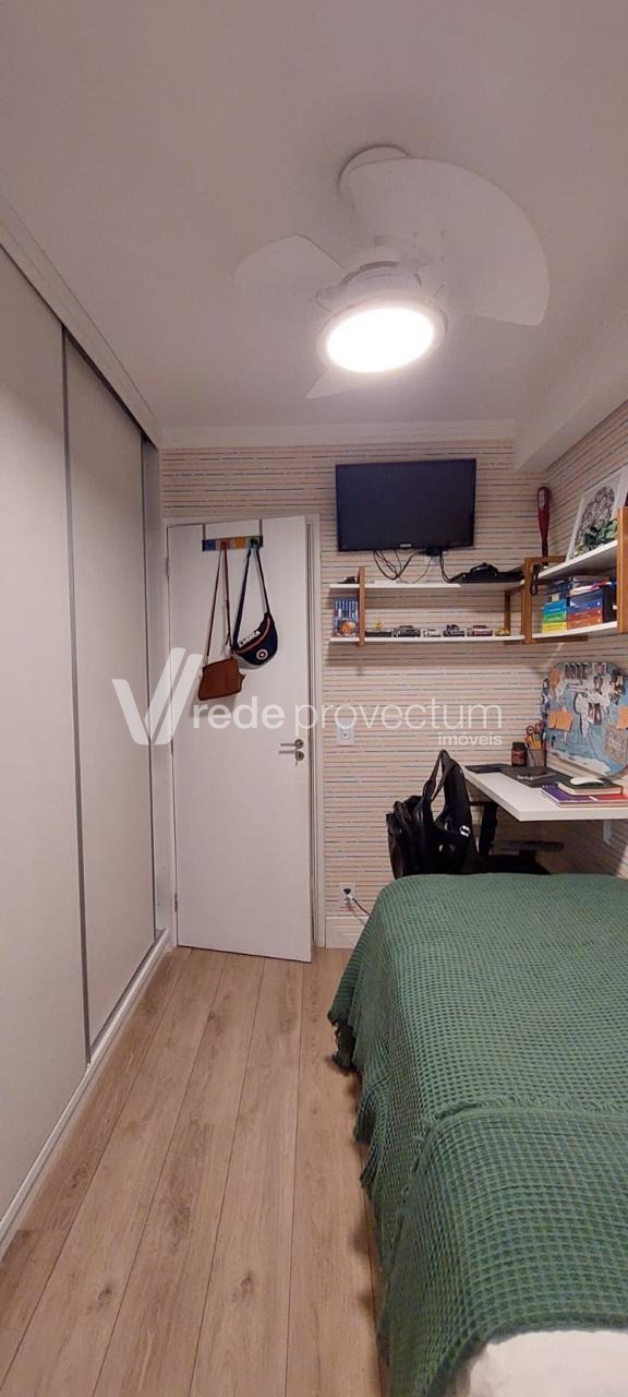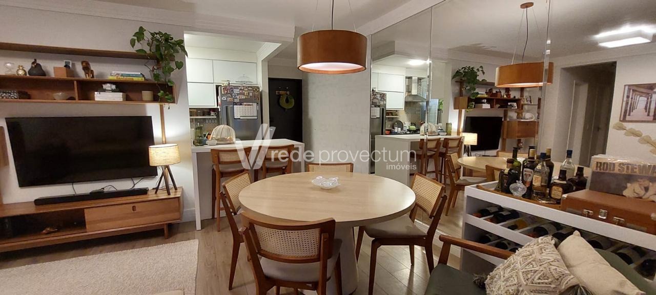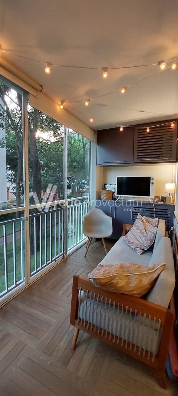 Lindo apartamento, fácil acesso à Puc e Unicamp, com 3 dormitórios com armários planejados sendo 1 suíte, cozinha americana rica em armários planejados, área de serviço, living para 2 ambientes com varanda gourmet e painel com armários, banheiro social completo, 2 vagas de garagem, lazer completo e portaria 24 horas. Agende já uma visita!