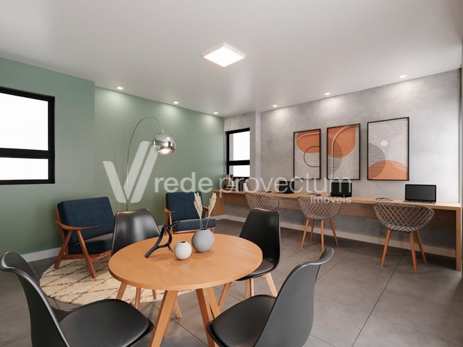 Cozinha planejada, área de serviço com divisória, banheiro social. 1 vaga de garagem. Condomínio com área de lazer completa, Piscina aquecida, Churrasqueira com forno de pizza, Salão de festas, Academia, Playground, Quadra de esportes, Loja de conveniência e portaria 24 horas. À 350 m² da Rodoviária de Campinas, fácil acesso para a Rodovia Anhanguera.