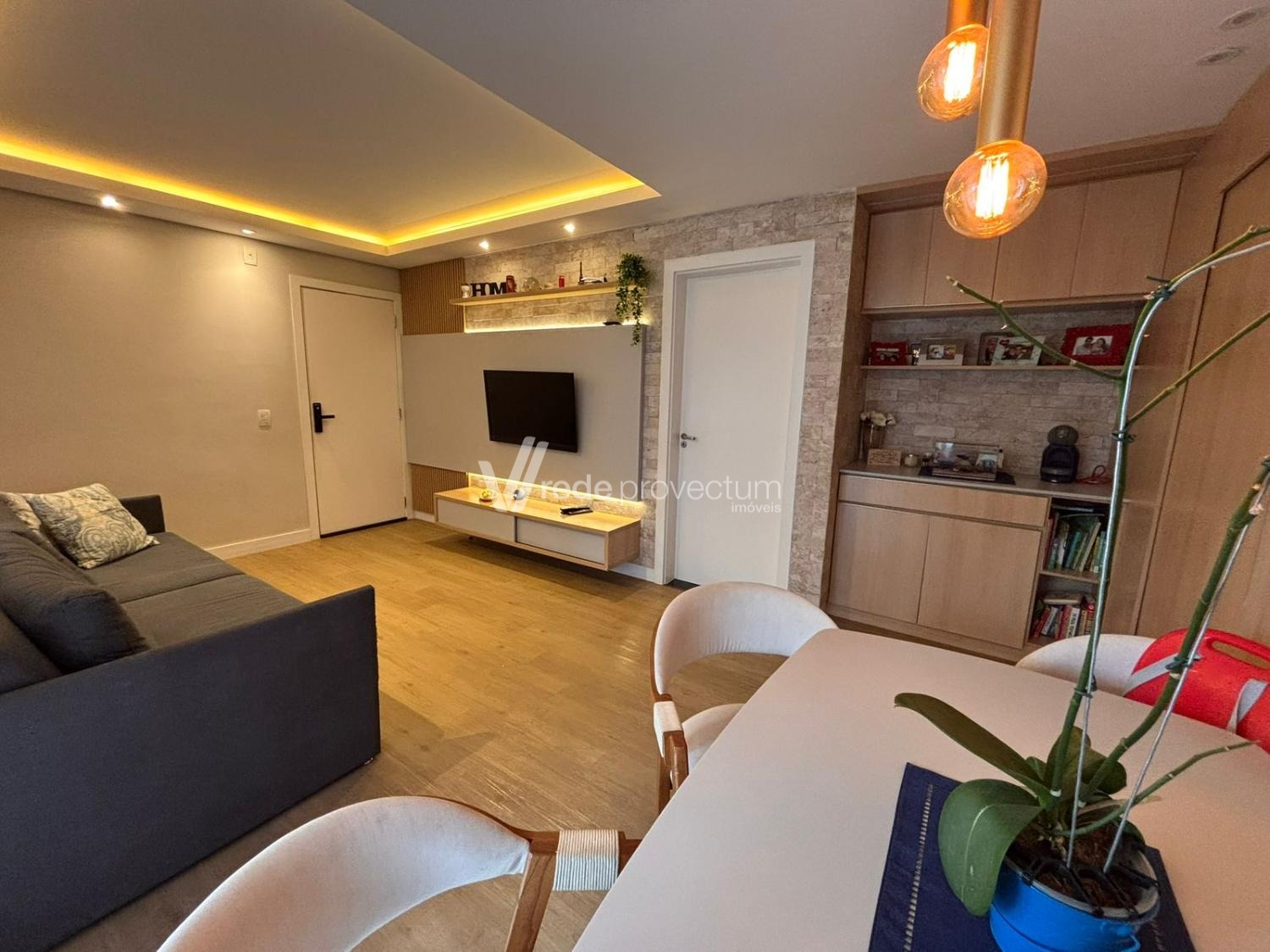 Lindo apartamento, fácil acesso à Puc e Unicamp, com 3 dormitórios com armários planejados sendo 1 suíte, cozinha americana rica em armários planejados, área de serviço, living para 2 ambientes com varanda gourmet e painel com armários, banheiro social completo, 2 vagas de garagem, lazer completo e portaria 24 horas. Agende já uma visita!