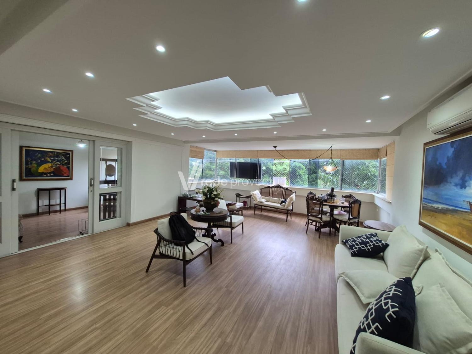 Apartamento a venda no Cambuí, frente ao centro de convivência. Com 3 dormitórios, 1 suíte, 2 vagas, sala de TV, sala de visita com 3 ambientes, área íntima bem separada da área social. Cozinha grande, rico em armários. Lavanderia com banheiro e quarto de serviço.Vista definitiva para o centro de convivência, portaria 24 horas e água inclusa no valor do condomínio.