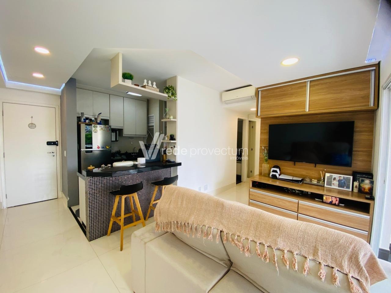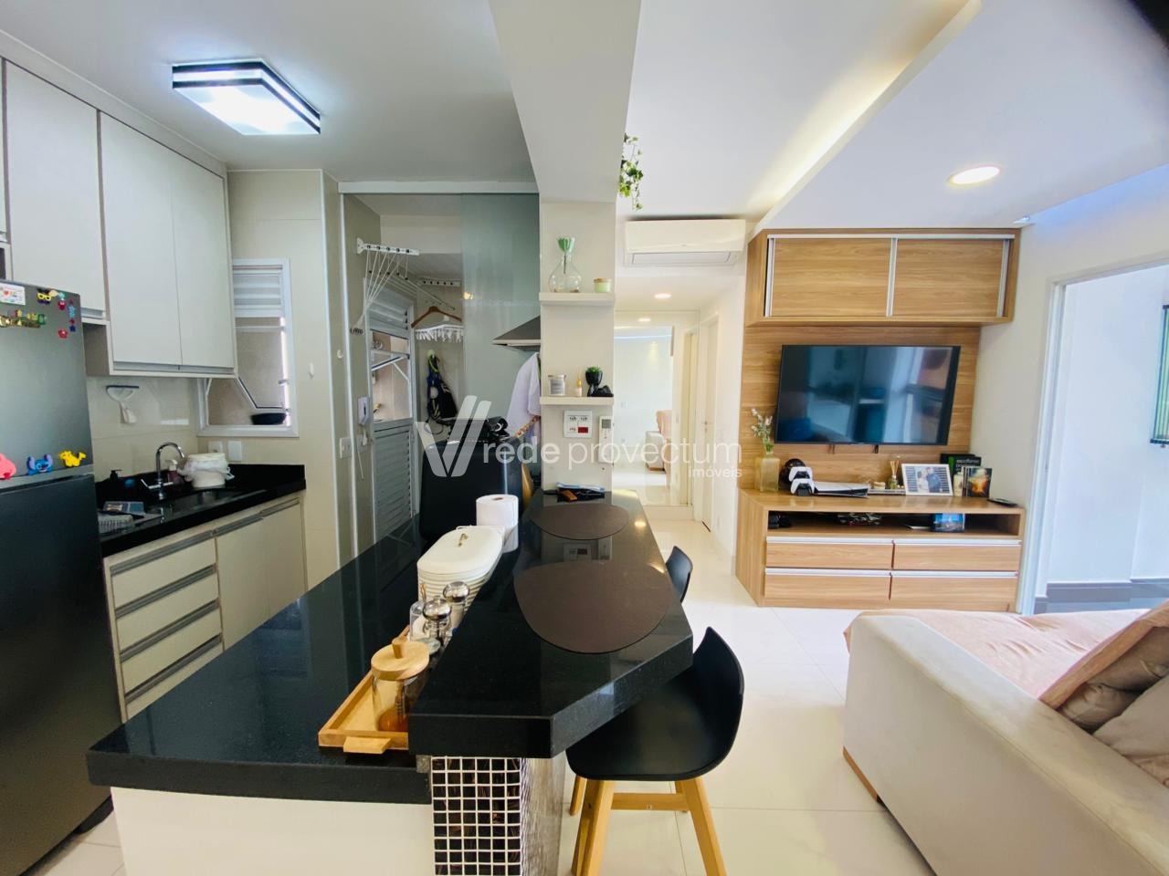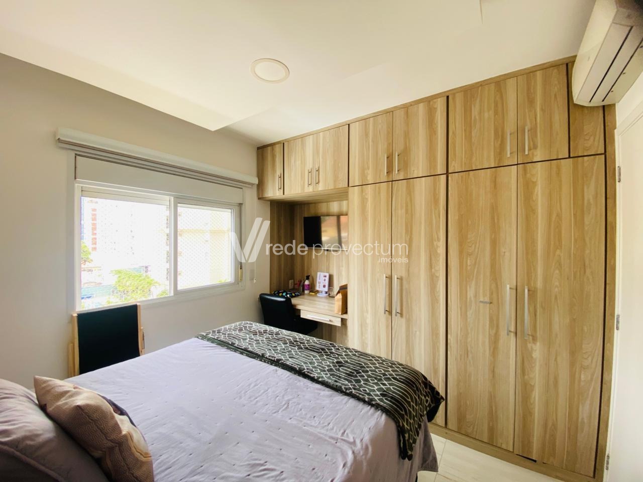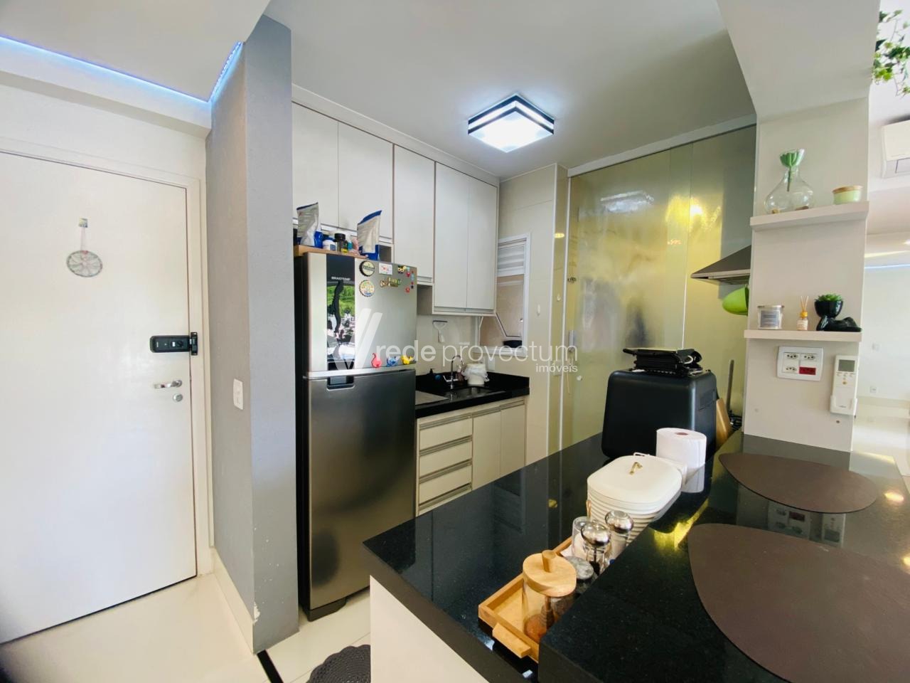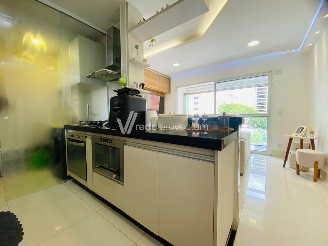 Apartamento para venda no Condomínio Unic, Cambuí. Sala para 2 ambientes com varanda, cozinha americana, 1 dormitório, 1 vaga de garagem. Móveis planejados em todos os cômodos, além ar condicionado na sala e no dormitório, forno, cooktop e coifa. O condomínio possui portaria 24 horas, piscina, academia, churrasqueira, forno de pizza, salão gourmet. Agende agora sua visita.