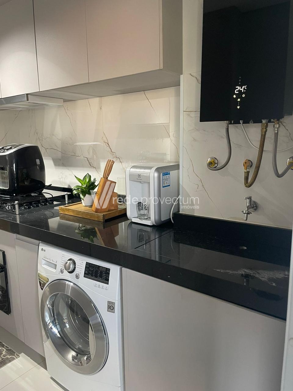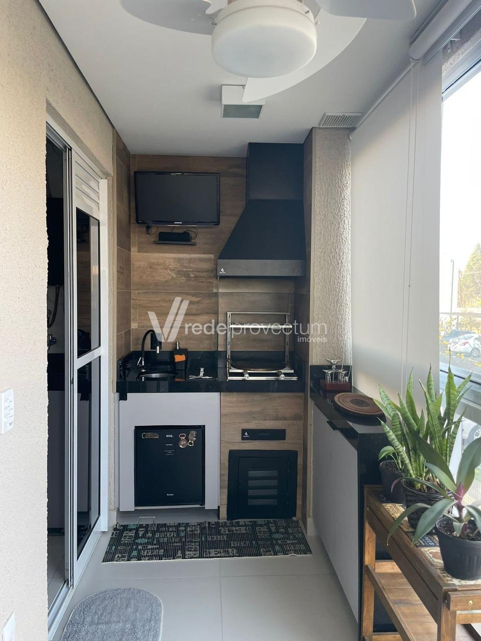 Varanda gourmet com churrasqueira, cervejeira.