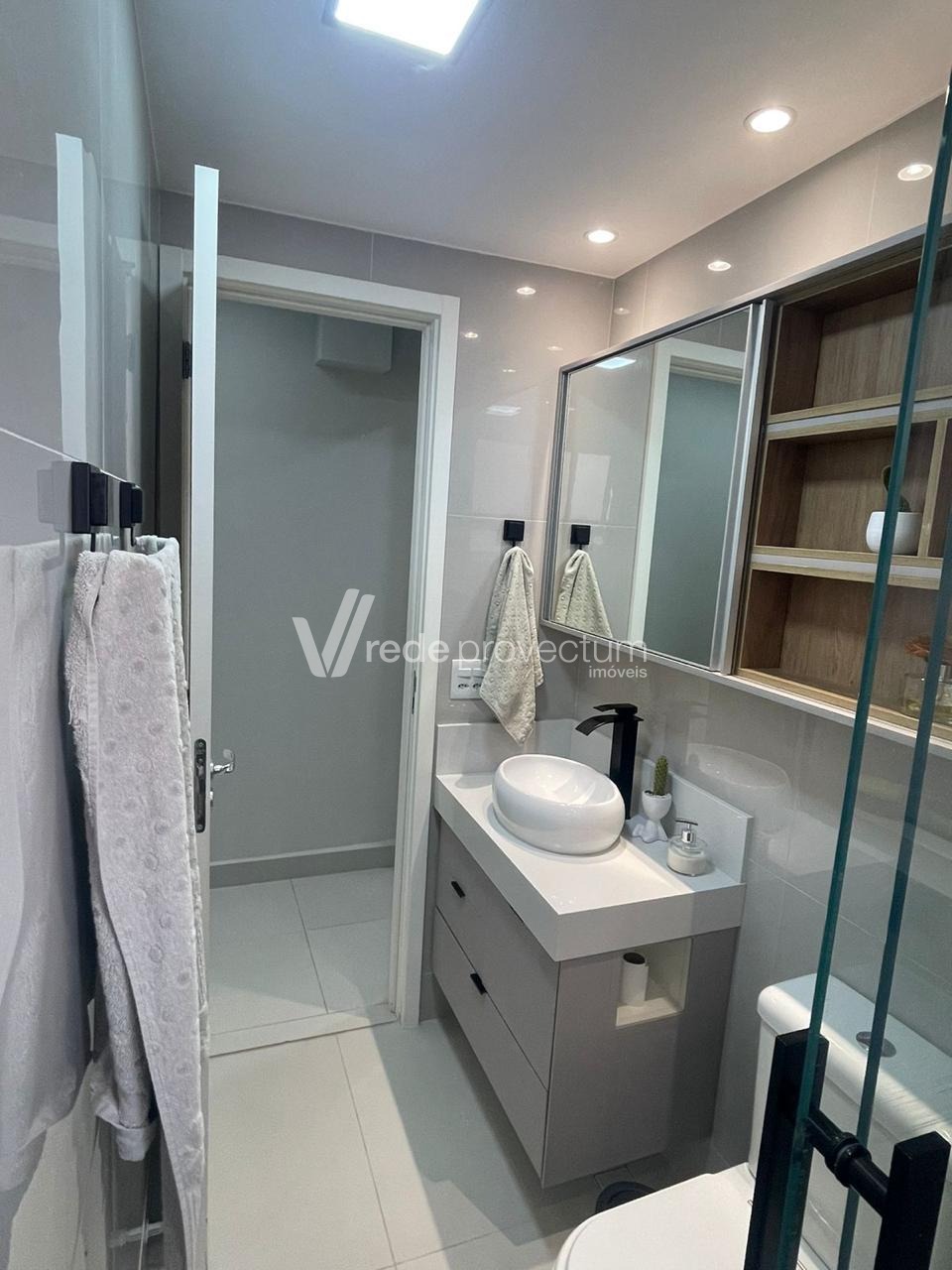 Banheiro: Social, com box e armário planejado.
