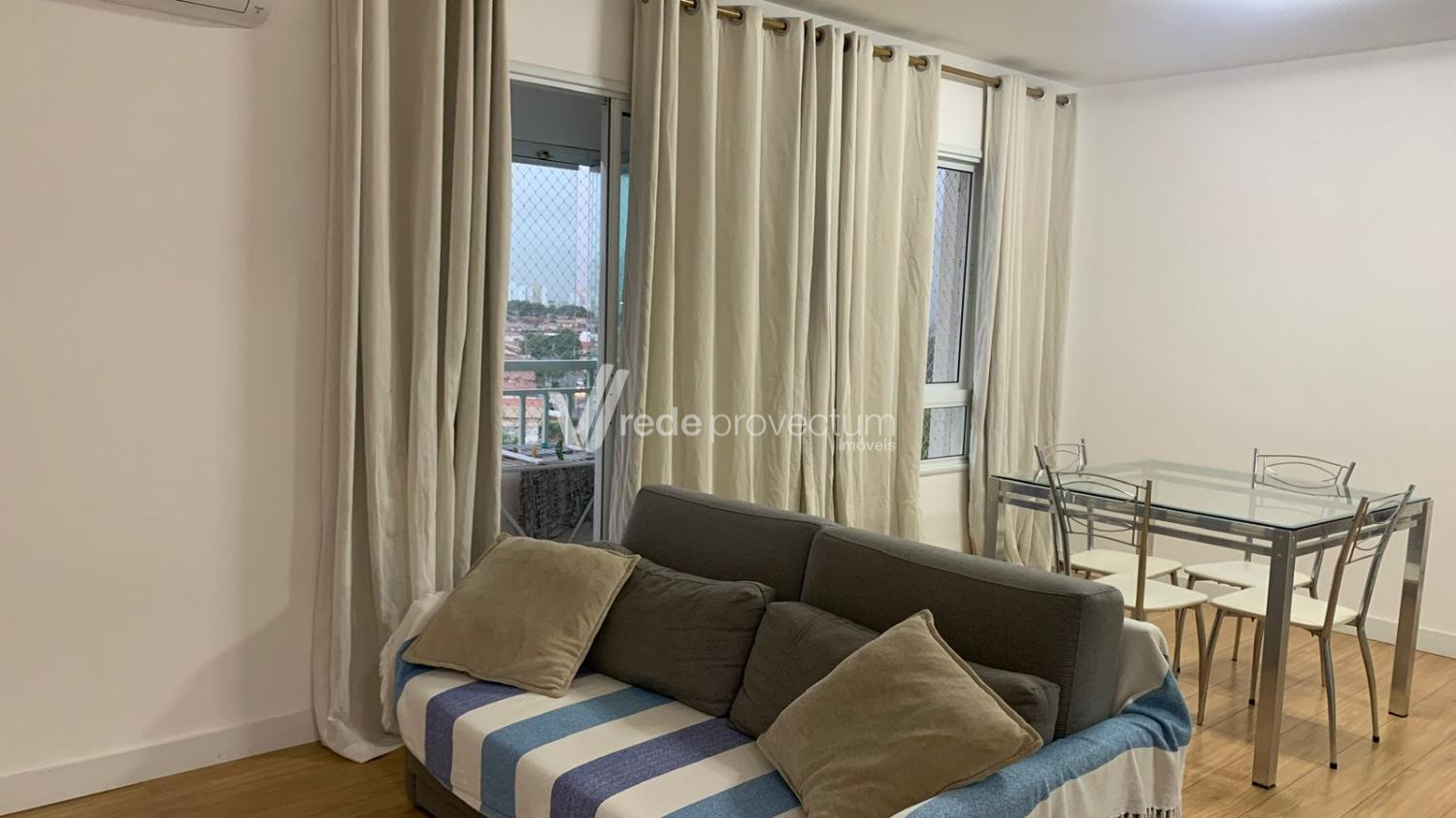 Apartamento em excelente localização próximo ao Shopping Prado, Supermercado Pague Menos, Parque das Águas, fácil acesso as rodovias Anhanguera, Magalhaes Teixeira, Santos Dumont e Bandeirantes, 3 dormitórios 2 com armários planejados outro projetado para escritório home office com prateleiras e bancadas, sala para 2 ambientes com painel rack e sacada na parte do jantar com espelho na parede inteira, banheiro com box de vidro cuba em granito preto e gabinete planejado, cozinha modelo americana toda planejada em armários, piso laminado no apto todo, e piso frio na cozinha e banheiro, rede de proteção em todas as janelas, sol da manhã, ar condicionado. Condomínio com câmeras de segurança, monitoramento, cerca elétrica e portaria 24 horas, área de lazer com salão de festas com churrasqueira, playgrounds, quadra poliesportiva, garagem coberta.- Itens que irão fazer parte do imóvel: * Geladeira * Microondas * cooktop * Filtro de água * Lava e Seca 10KGs * TV * Ventilador Arno * Ar condicionado 12.000 BTus Portátil * Aquecedor para o Inverno * Tábua de passar * Ferro * luminária na cabeceira do quarto principal * 2 Camas * Sofá * Mesa com 6 cadeiras etc.