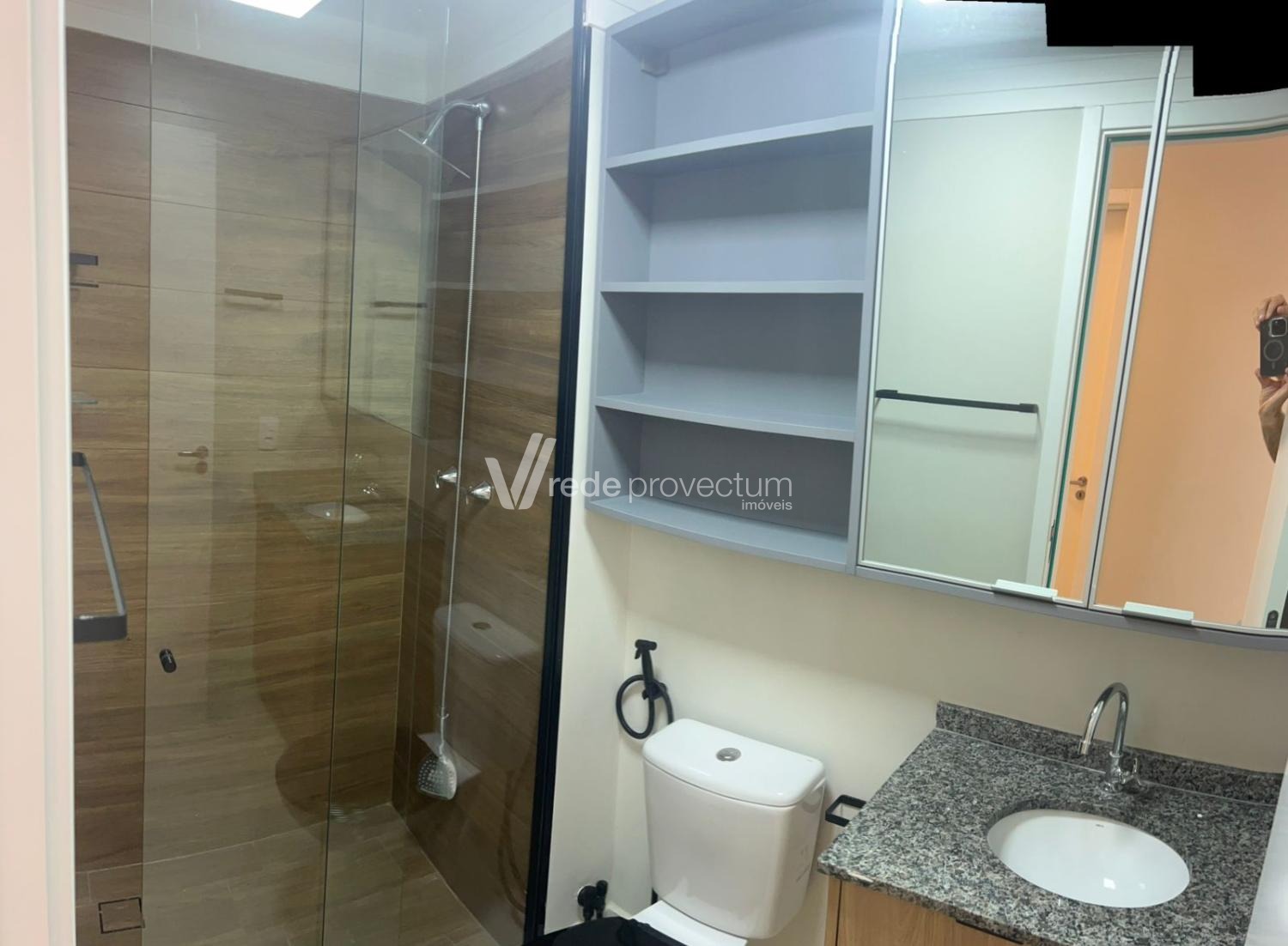- Banheiro com armário e box blindex.