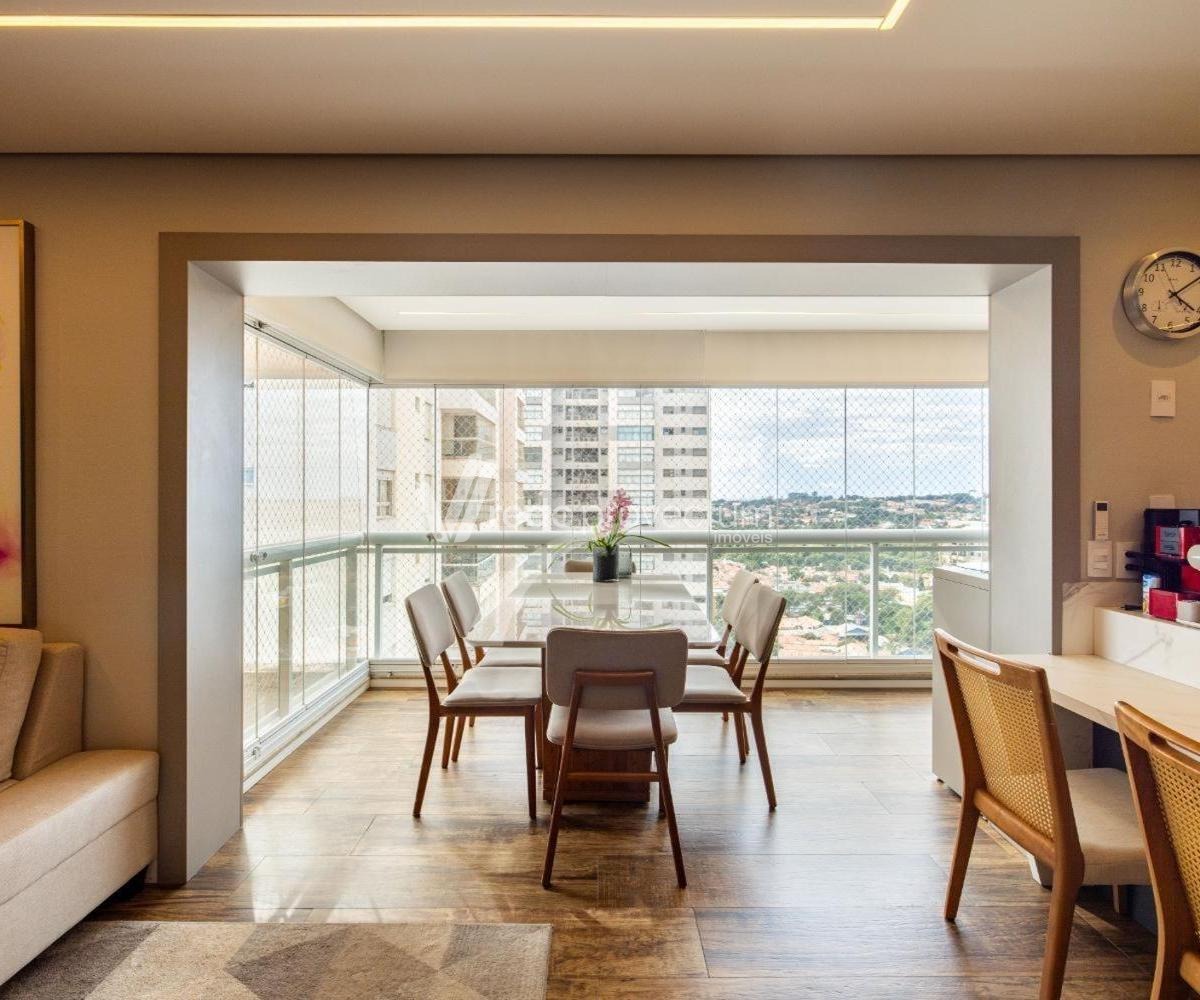 Apartamento de alto padrão à venda em localização privilegiada, a poucos minutos da Lagoa do Taquaral, em Campinas/SP, com fácil acesso a supermercados, bancos, padarias, farmácias, restaurantes e comércios em geral. Com 119 m², situado no 19º andar e com vista para a piscina (sol da tarde), o imóvel oferece conforto, sofisticação e excelente acabamento em todos os detalhes. São 3 suítes com armários planejados, ampla sala para dois ambientes, varanda gourmet integrada com persiana motorizada, lavabo e um escritório ideal para home office. A cozinha americana é planejada, além de contar com lavanderia, despensa e duas entradas (social e de serviço). O apartamento possui ar-condicionado na sala e nas suítes, é rico em armários planejados, apresenta acabamento fino, moderno e de alta qualidade, com mármores e granitos sofisticados, sacada com fechamento em vidro e excelente iluminação natural, com sol da tarde. Dispõe ainda de 3 vagas de garagem. Agende sua visita e venha conhecer esse imóvel incrível!