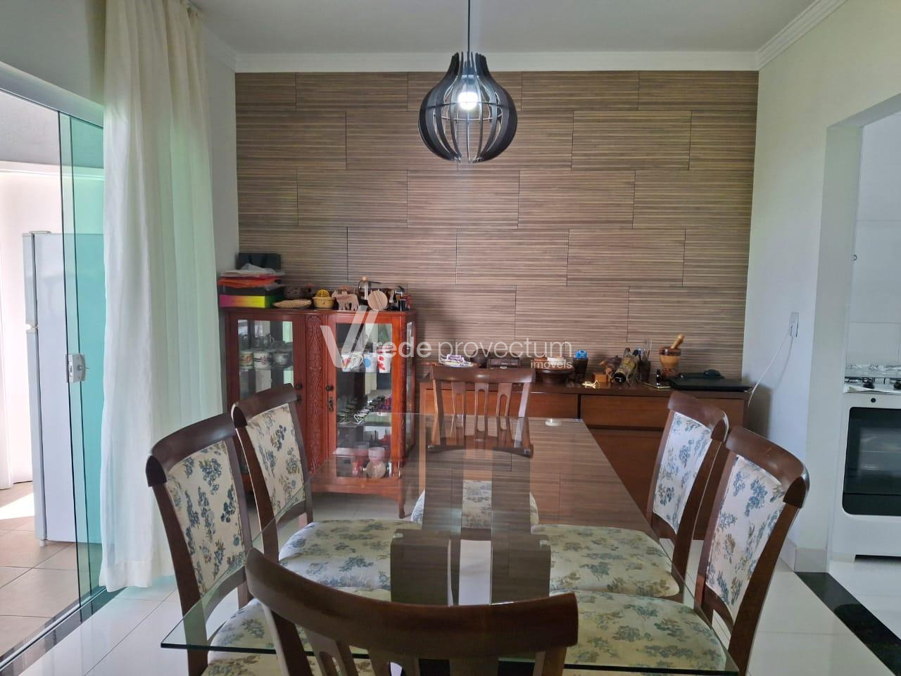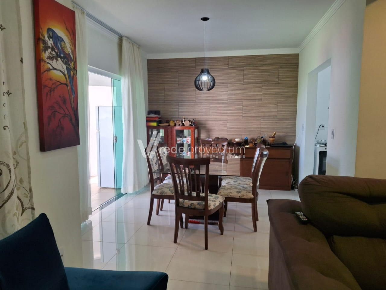 Duas salas, uma de jantar e outra de TV.