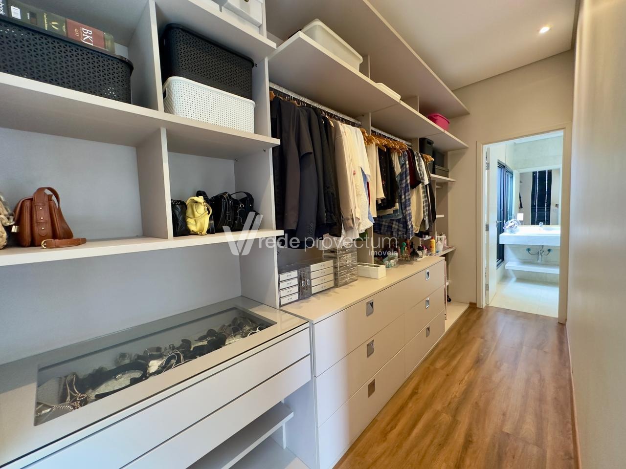 O imóvel conta com 3 dormitórios, sendo 2 suítes com armários planejados e uma delas no piso inferior, proporcionando mais conforto no dia a dia. Há ainda banheiro social completo, com box e armários.
