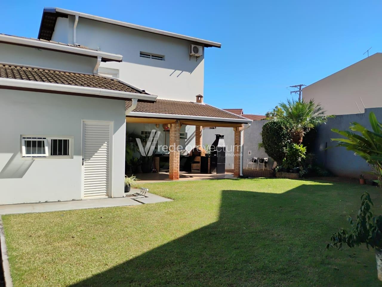 Sobrado com ótimo acabamento, bancadas em granito, piso em porcelanato e excelente iluminação natural. Bem localizado, rua tranquila e sem saída, próximo a PUC-Campinas, Unicamp, com fácil acesso a shoppings, hipermercados e às principais rodovias da cidade. O piso superior conta com 3 dormitórios + 1, sendo 1 suíte com banheira de hidromassagem. Na parte térrea, há lavabo, 3 salas amplas e integradas, cozinha planejada com ilha, despensa, lavanderia com banheiro e espaço gourmet. Quintal gramado e bem cuidado. Possui cisterna para 5.000 litros e 7 vagas de garagem, sendo 2 cobertas. São 3 portões no total. Documentação em ordem. Rede Provectum.