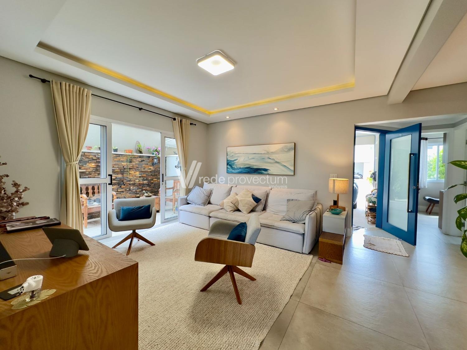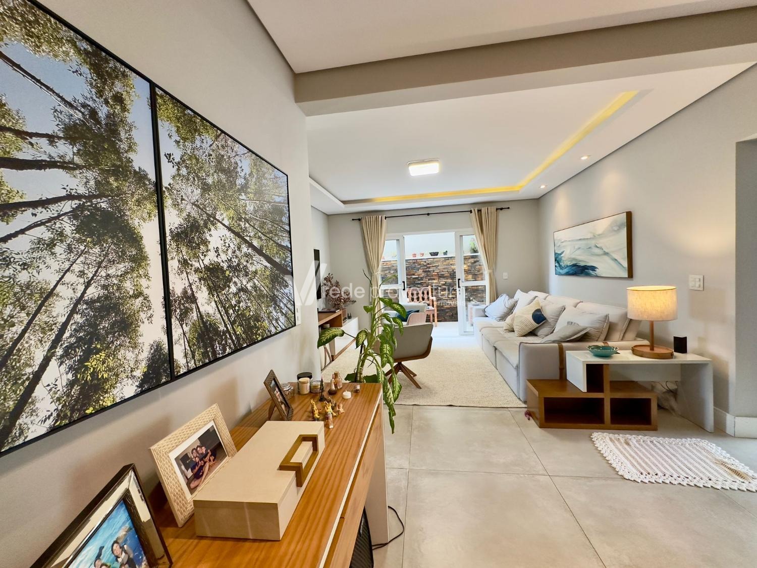 Sala de estar em 2 ambientes com jardim de inverno e lavabo.