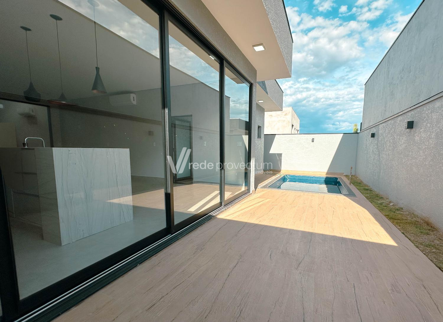 Casa à venda, no Condomínio Santorini Residencial Club, bairro Parque Brasil 500 em Paulínia. Casa térrea em construção, com 212,86 m²,, Sala para 2 ambientes com pé direto duplo, cozinha em estilo americano rica em armários planejados; 3 suítes com armários planejados, sendo a máster com closet; escritório; espaço gourmet com churrasqueira, e quintal com piscina.Persianas automatizadas.