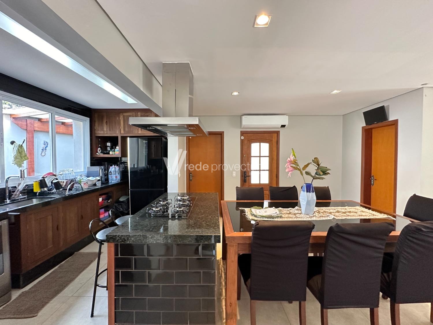 Casa ampla de 4 dormitórios com ar condicionado, 2 suítes, sendo 1 suíte master com closet e hidro. Salão para 3 ambientes com pé direito alto, lareira, mezanino com sacada, home-office e suíte privativa para hóspede. Cozinha americana, despensa e lavanderia coberta, varanda, jardim, canil, jardim de inverno, portão automático e 8 vagas de garagem. Espaço gourmet com cozinha, fogão a lenha, forno, churrasqueira, banheiro, ducha e piscina de 5x7m, iluminação por fotocélula, cerca elétrica, sistema de alarme, circuito fechado de Tv via internet e vídeo-porteiro eletrônico. Agende sua visita!