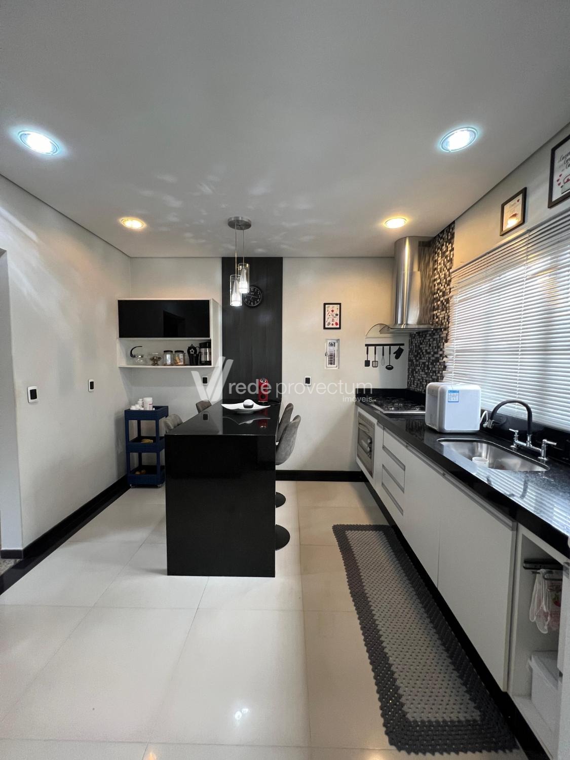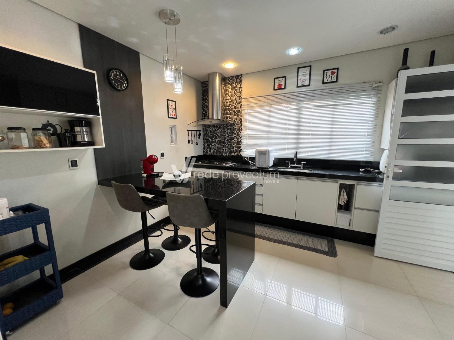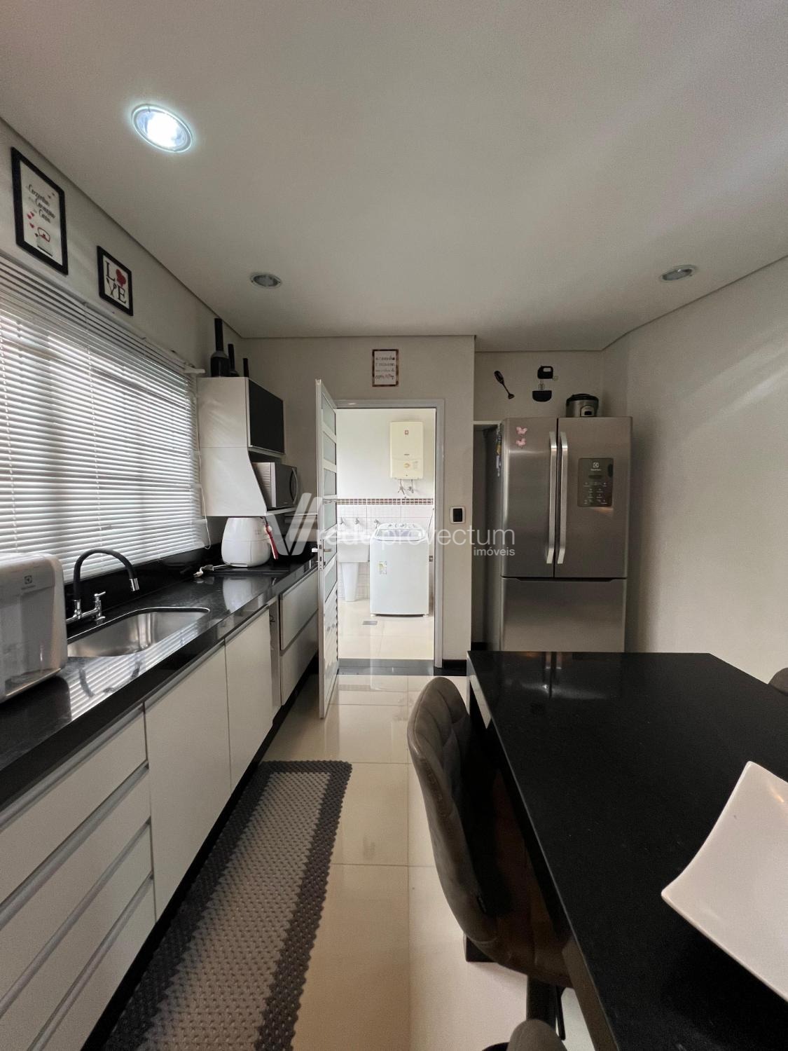 Cozinha bem equipada, com área suficiente para refeições em família e acesso direto à área de lazer churrasqueira no fundo, perfeita para momentos de confraternização e lazer ao ar livre.