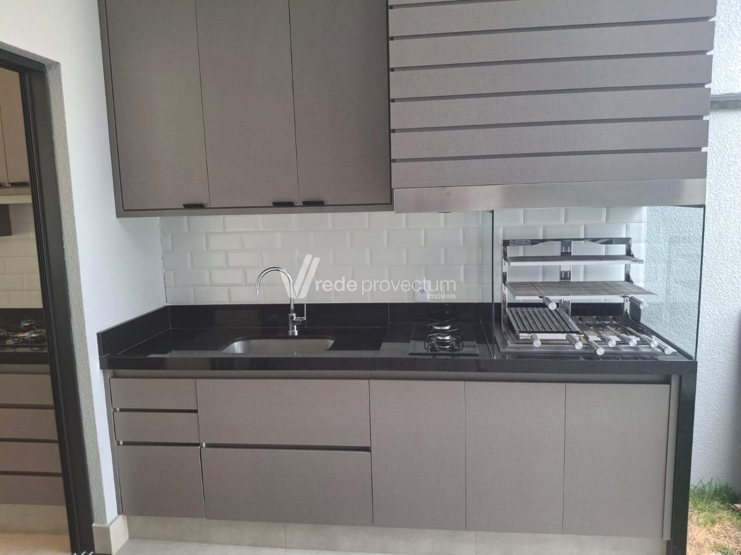 • Área gourmet com churrasqueira inox, cooktop e coifa — perfeita para confraternizações.
