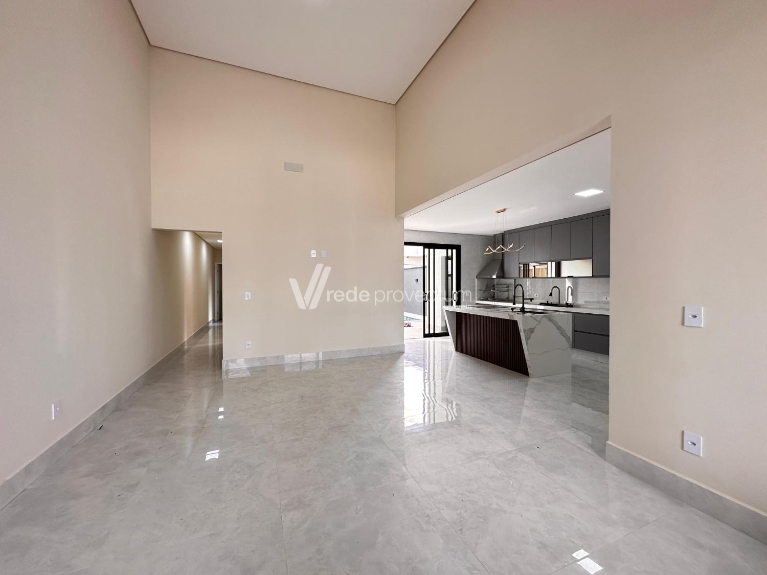 Pé direito duplo na sala.