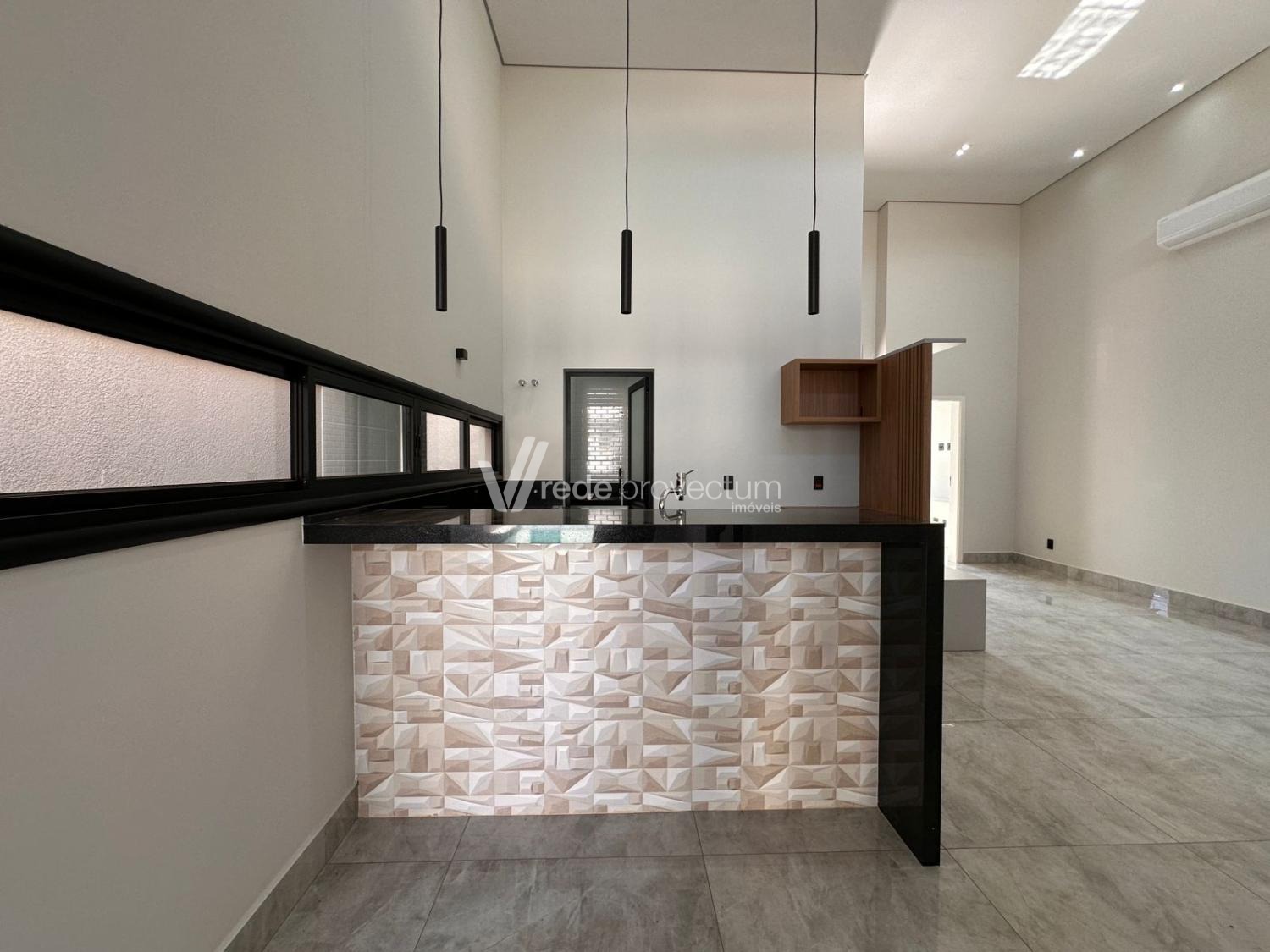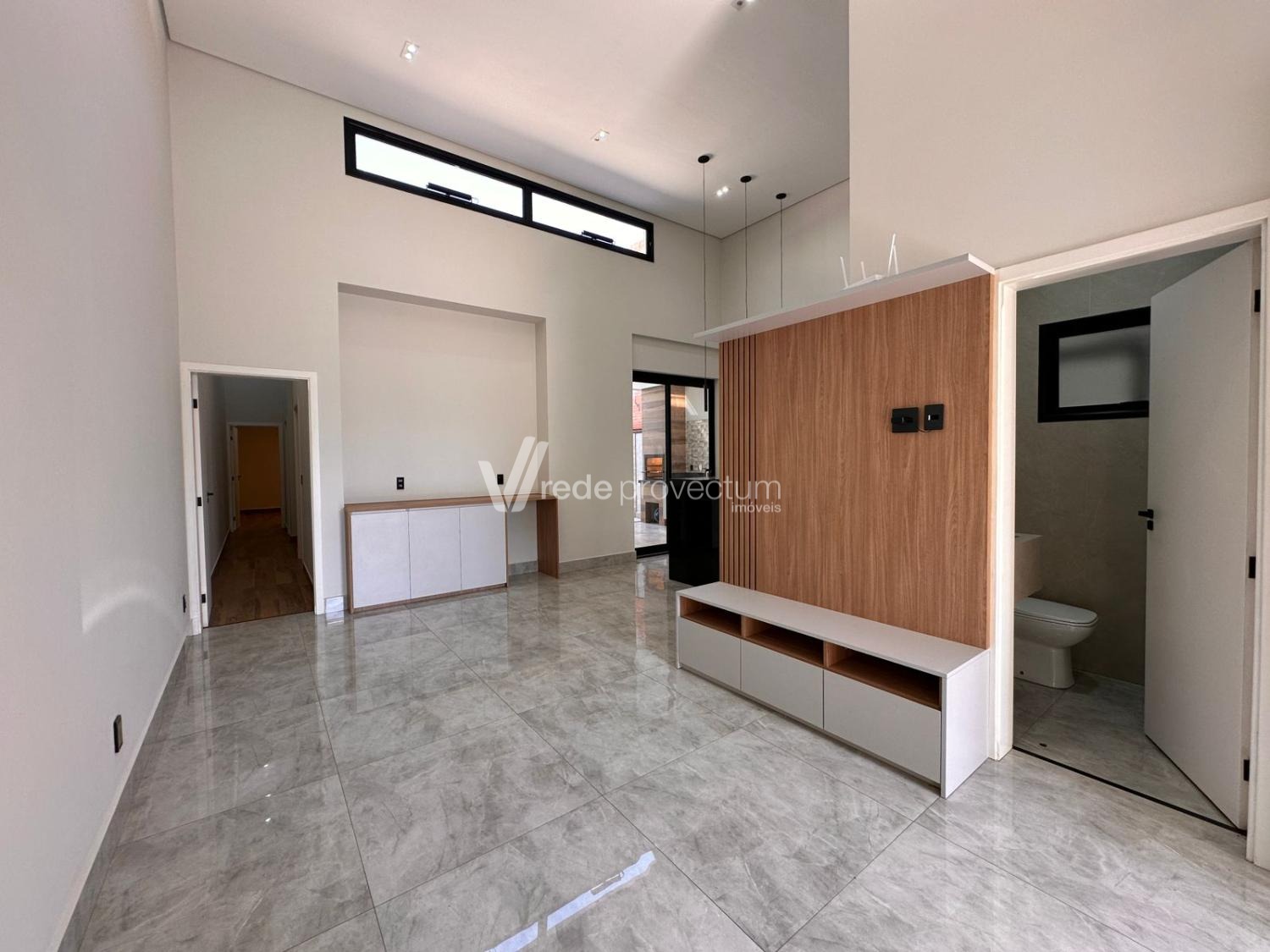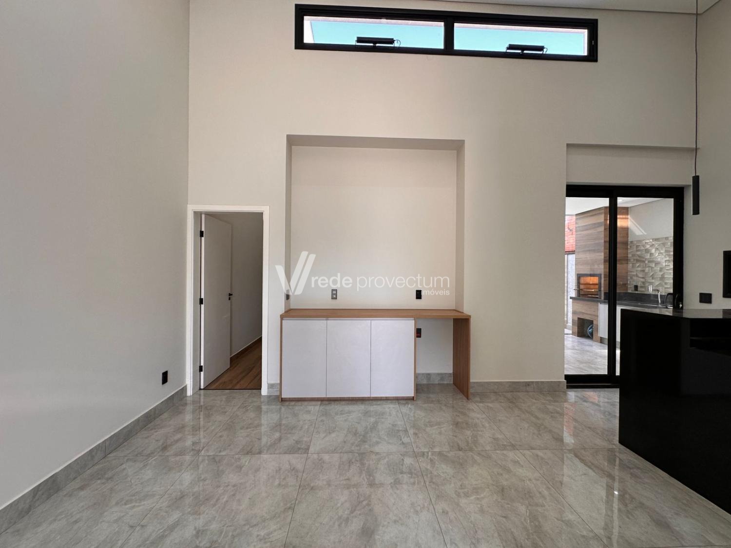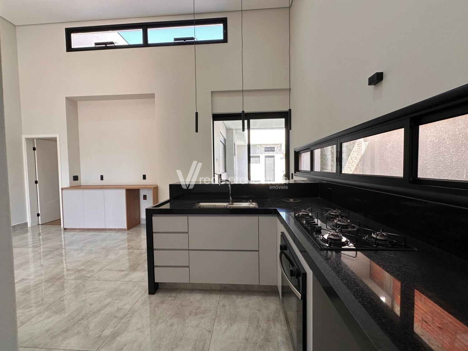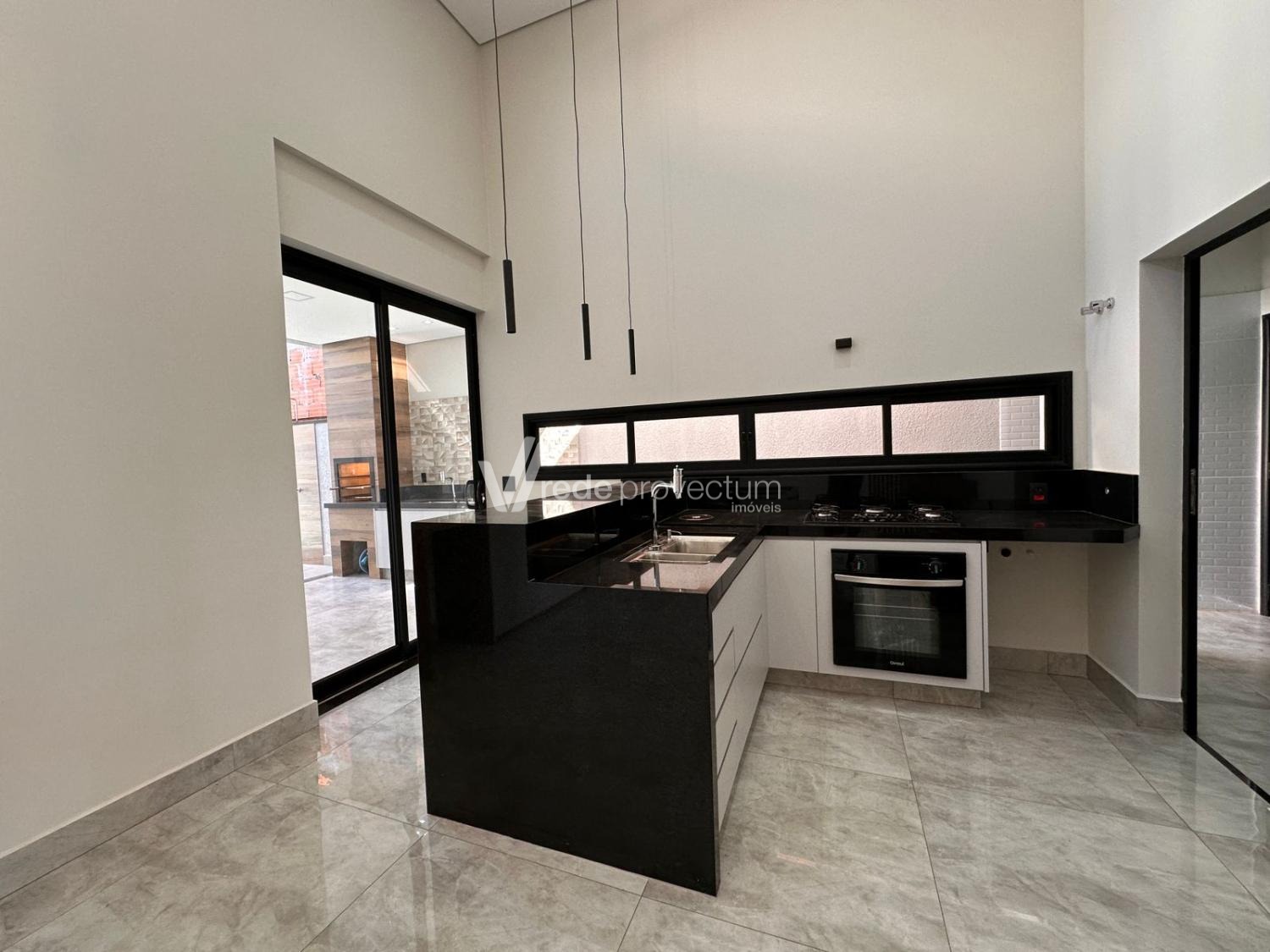 Sala para 2 ambientes com pé direito duplo, sala, escritório, cozinha rica em armários planejados , cooktop e forno, area gourmet com churrasqueira, área de serviço, piso todo em porcelanato.