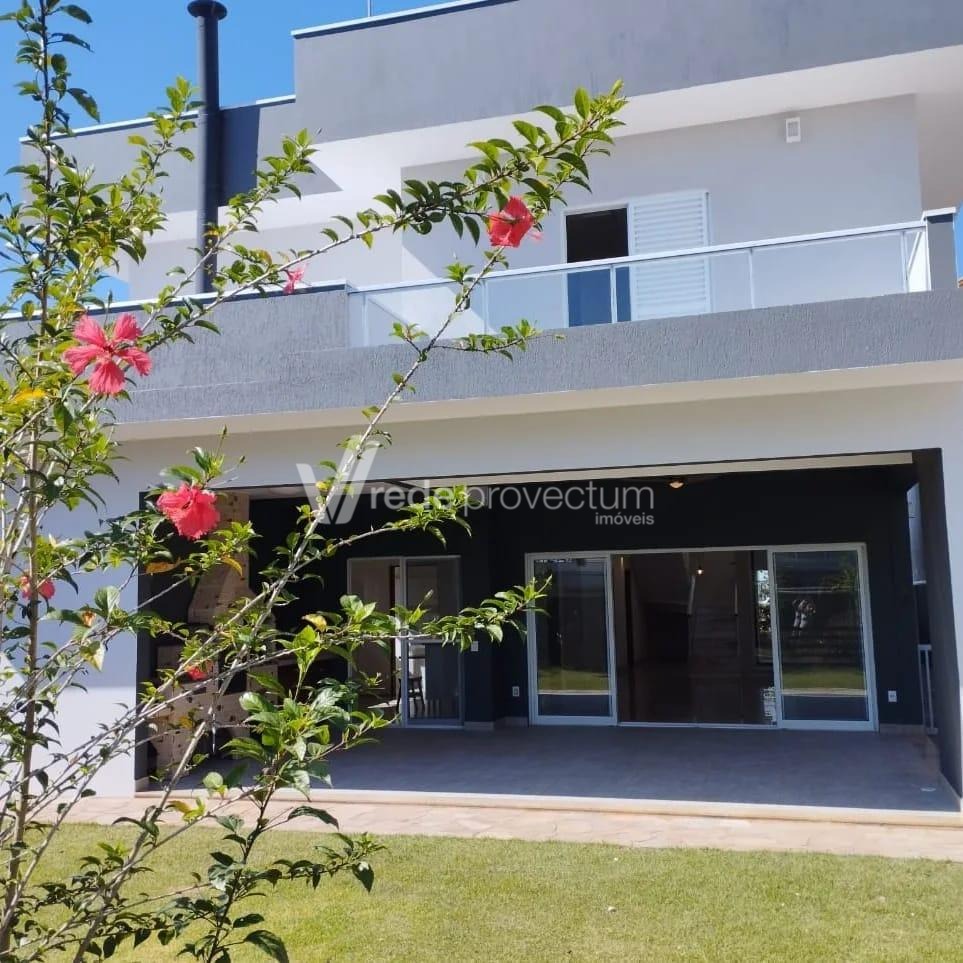 Casa à venda no condomínio Reserva dos Vinhedos, ampla, arejada e moderna, em um condomínio cercado pela natureza com 298 m² de área construída, possuindo 480 m² de terreno. No piso inferior: Hall de entrada e sala ampla com pé direito duplo com 2 ambientes (estar/jantar), jardim de inverno, escritório (que poderá ser revertido no 4° quarto),banheiro, home theather (ou sala multimídia). A cozinha e sala de jantar são integradas com o espaço gourmet em um amplo quintal que contém churrasqueira e banheiro, além de um pequeno depósito. No piso superior: 3 quartos, sendo uma suíte com closet e banheira de hidromassagem, sala íntima e um banheiro. Condomínio com fácil acesso as rodovias Anhanguera, Bandeirantes, Aeroporto de Viracopos, área de lazer completa, com piscina, quadras de tênis, poliesportiva, campo de futebol, sauna, churrasqueiras, fitness, salão de festas, 3 lagos para pesca esportiva e portaria 24 horas.