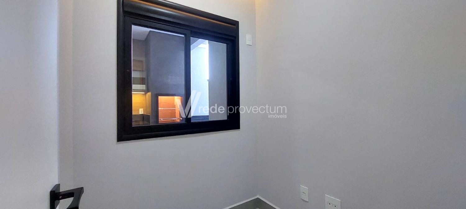 Coberta, com porta de fechamento eletrônico e armários planejados.