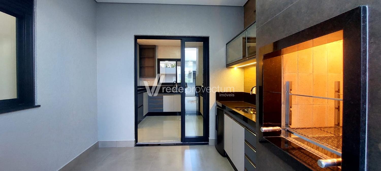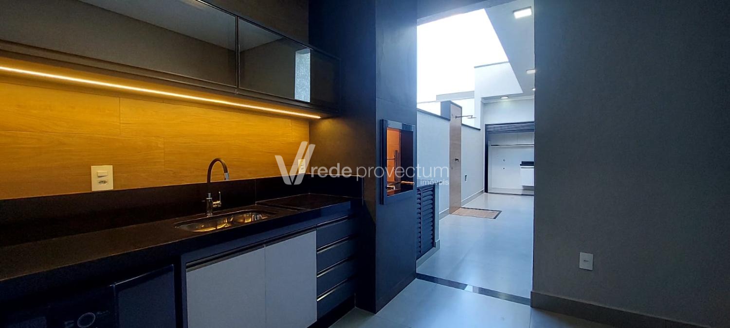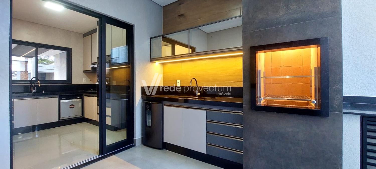 Ambiente coberto com churrasqueira, móveis planejados e cervejeira, ideal para receber amigos e familiares.