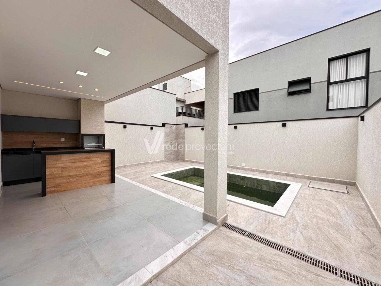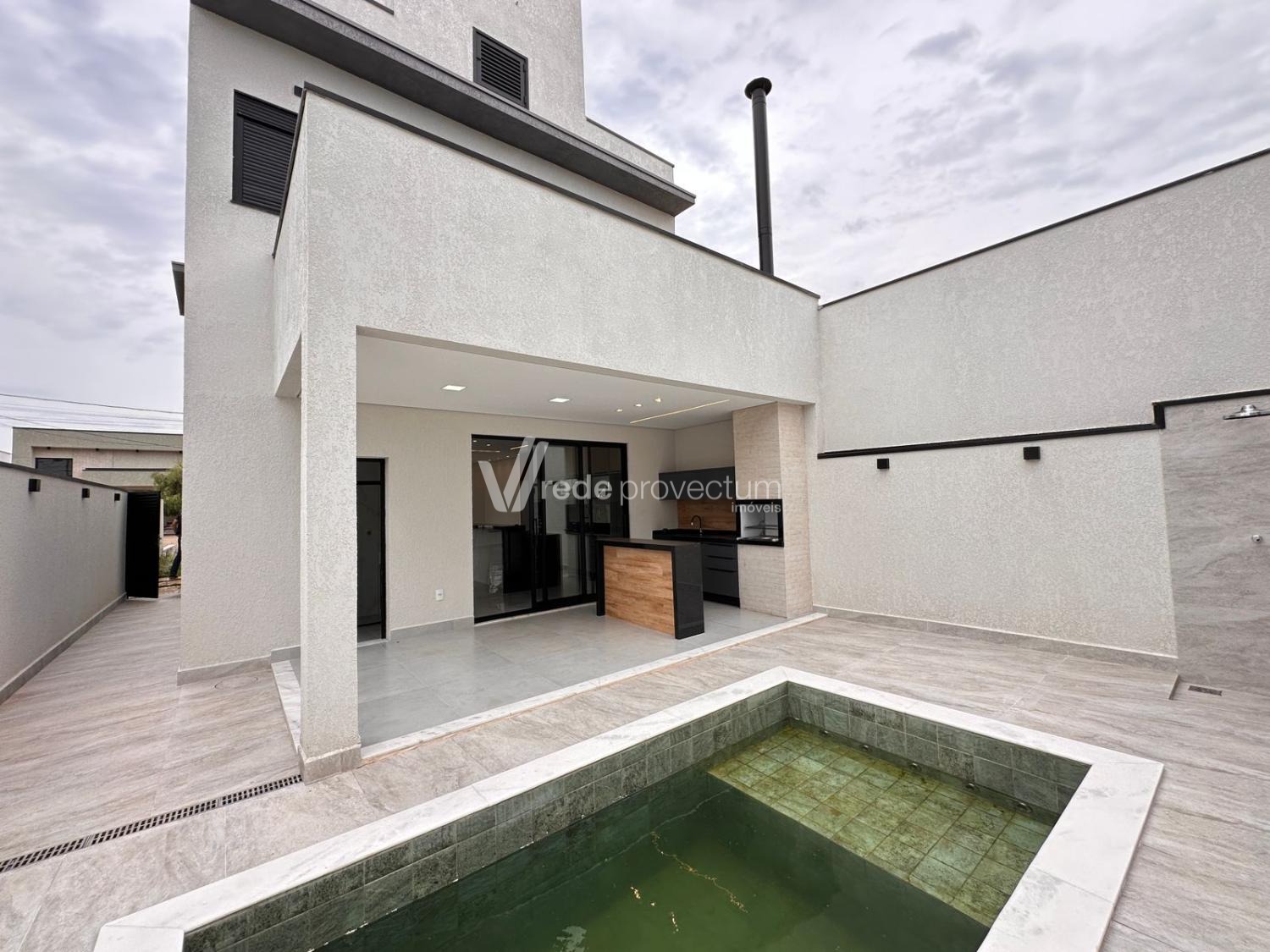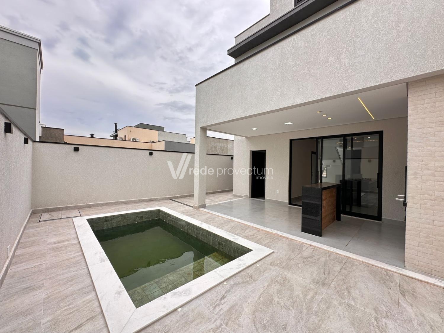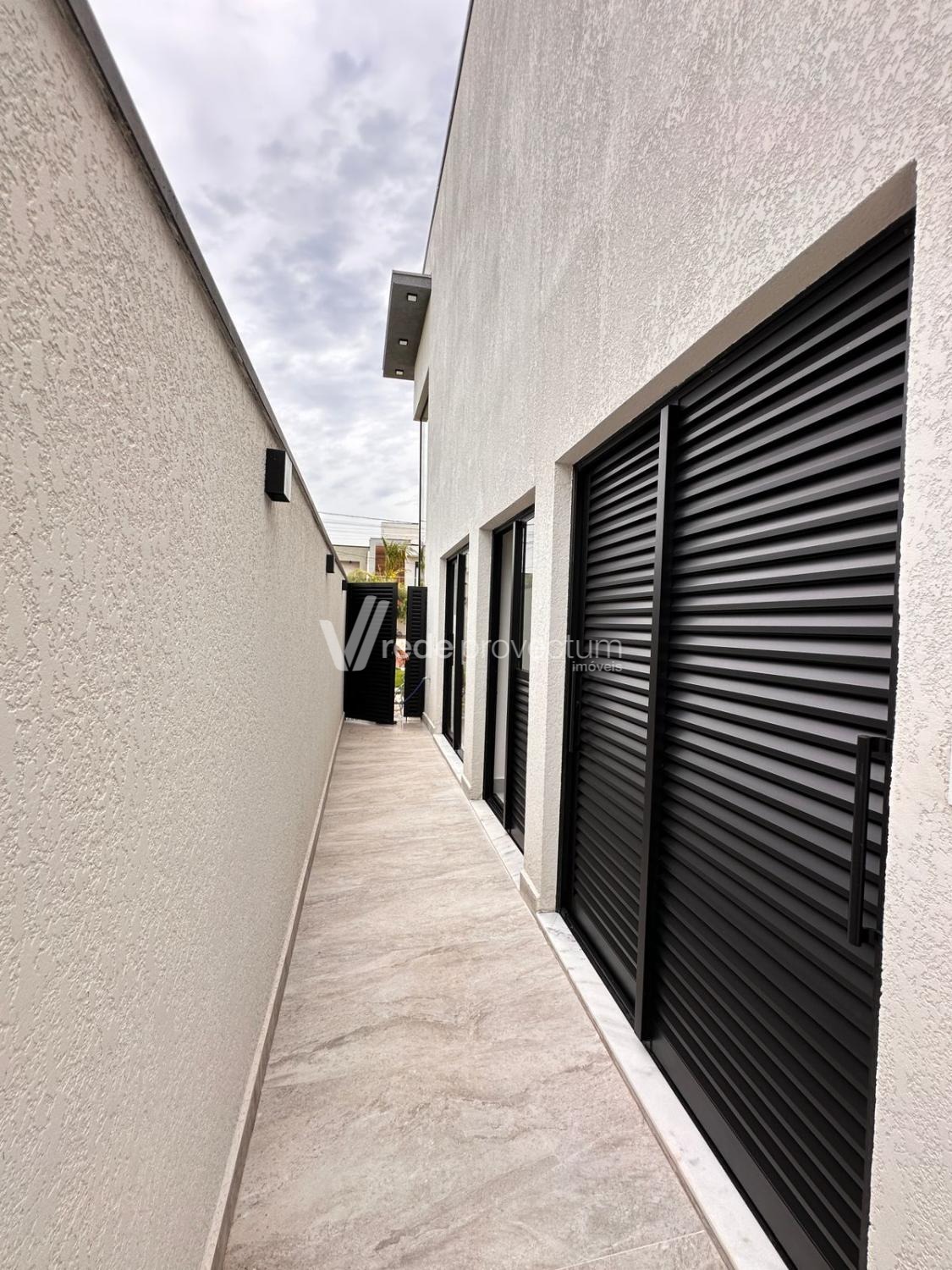 Casa à venda no condomínio Terras da Estancia em Paulínia. Sobrado em condomínio fechado com projeto exclusivo e fino acabamento, com 182m² de área construída. Projeto moderno, conceito aberto, ambientes integrados, sala para 2 ambientes - TV e jantar, cozinha com ilha, rica em armários planejados, equipada com cooktop, forno e micro-ondas, cozinha integrada ao espaço gourmet, lavanderia, lavabo. No piso superior são 3 suítes, sendo 1 suíte máster com closet e sacada, todos os quartos com armários planejados, persianas automatizadas com controle, ponto para ar condicionado. Área gourmet com churrasqueira e armários planejados, com 1 banheiro completo esterno.