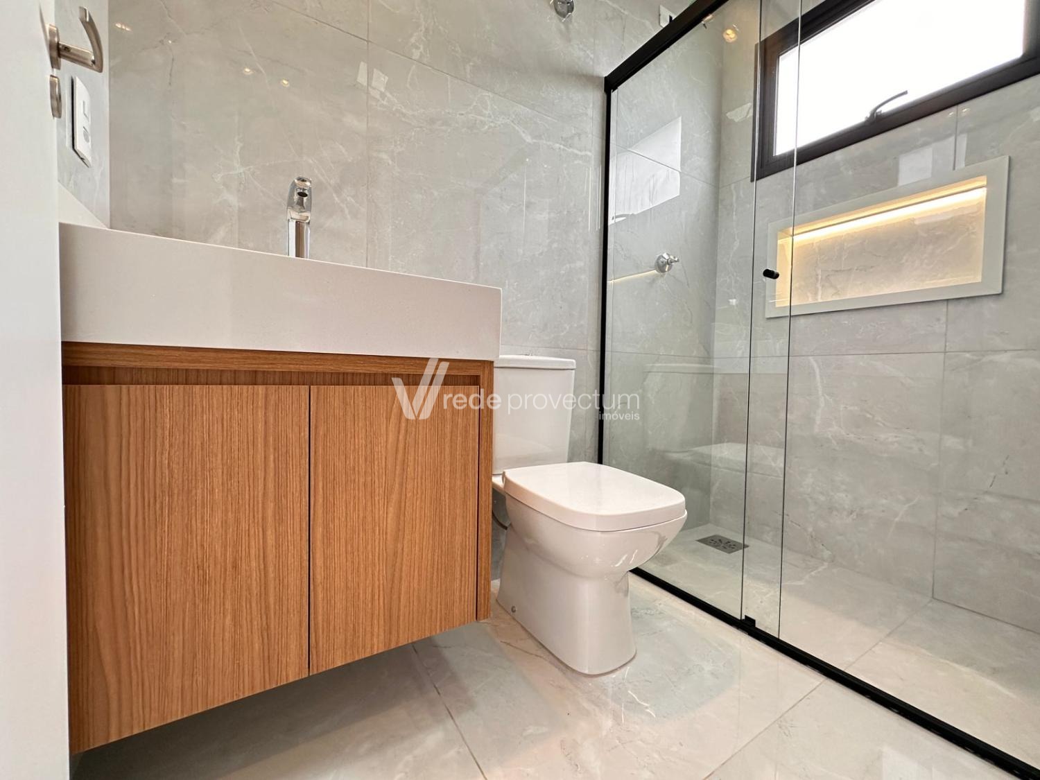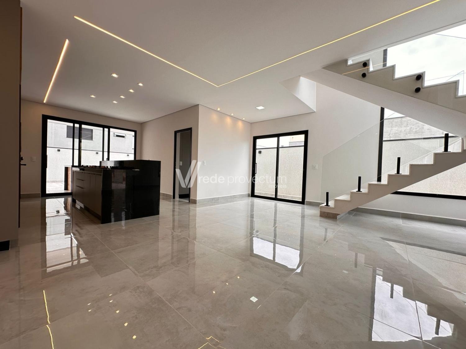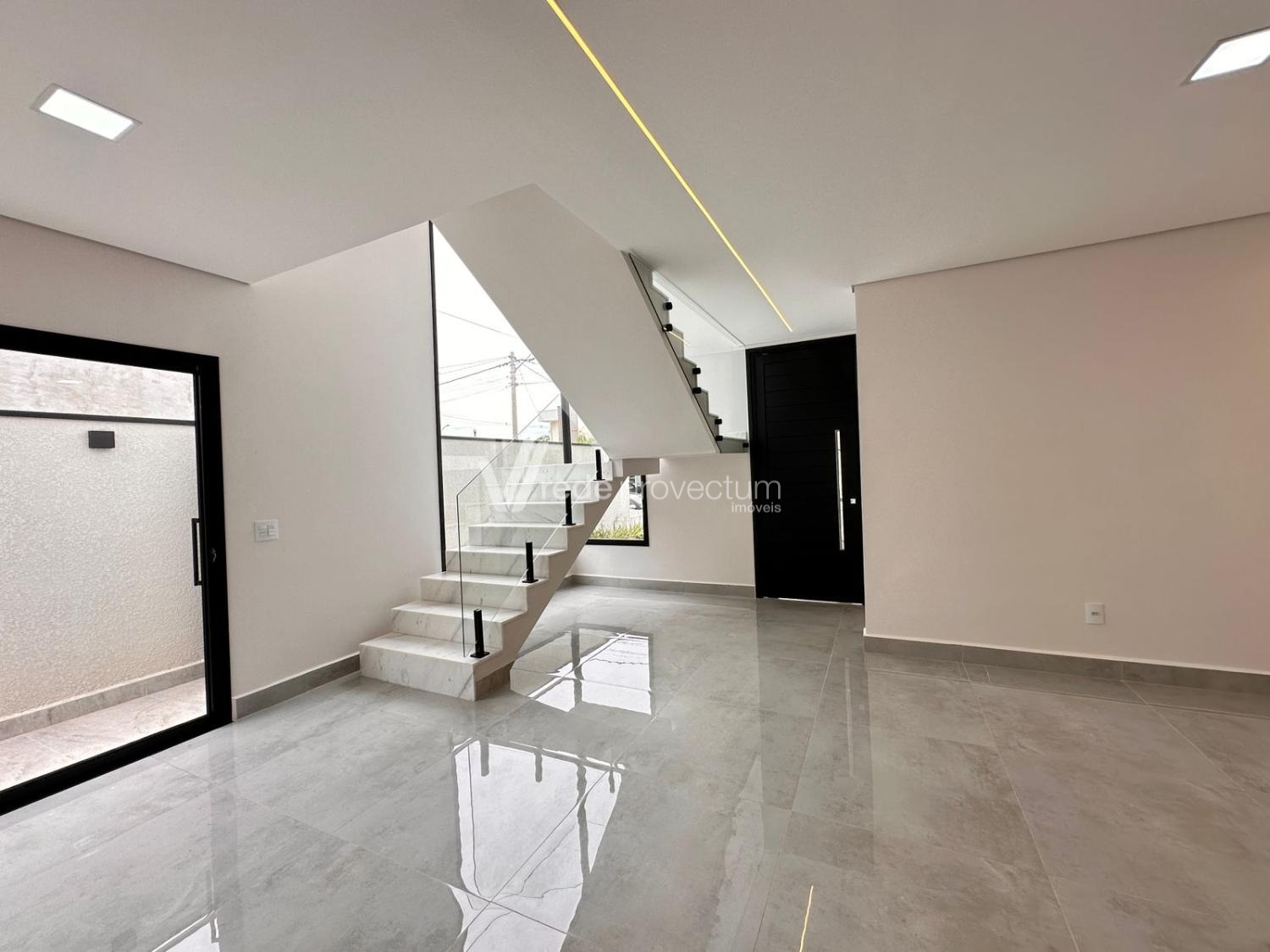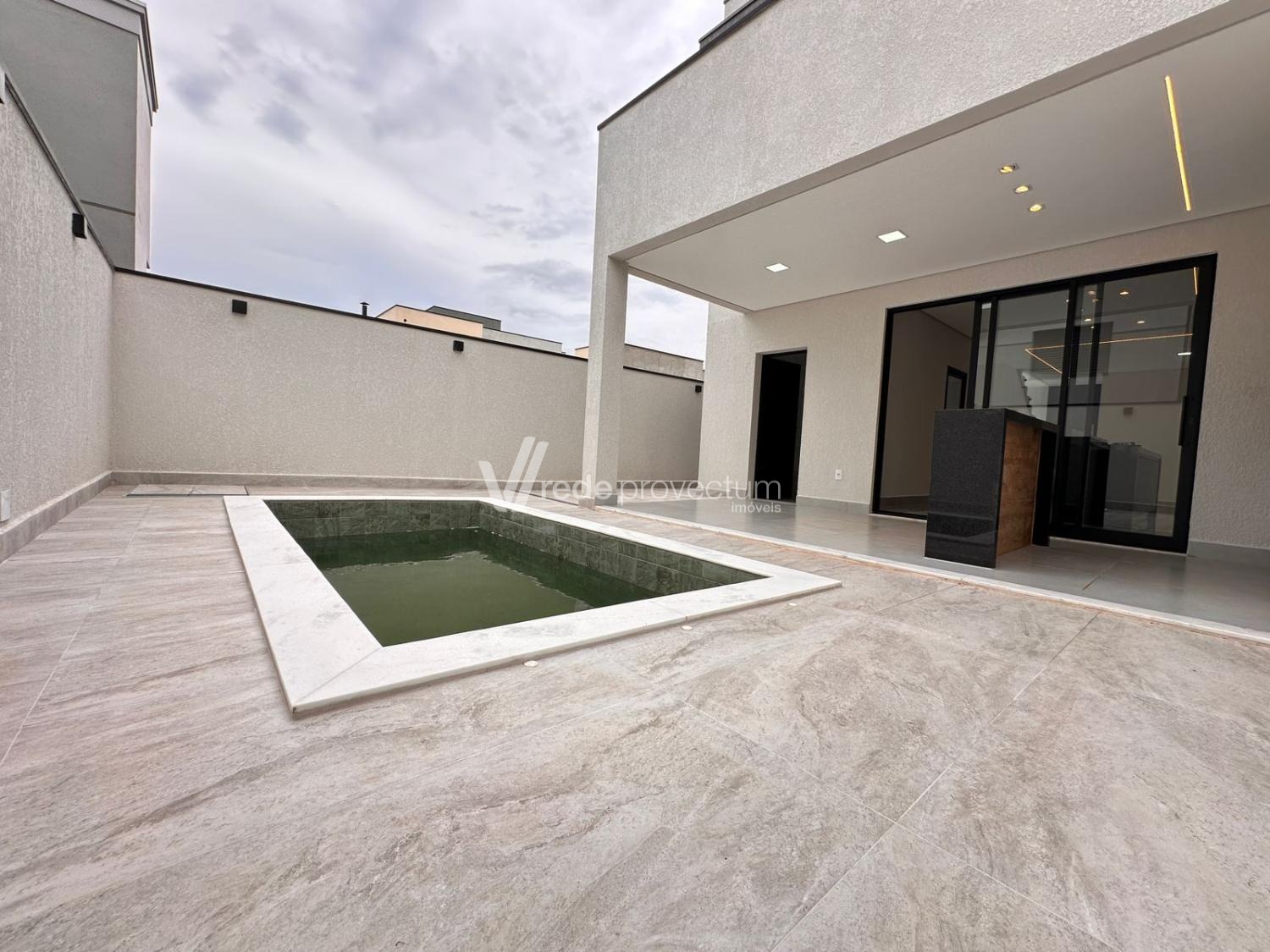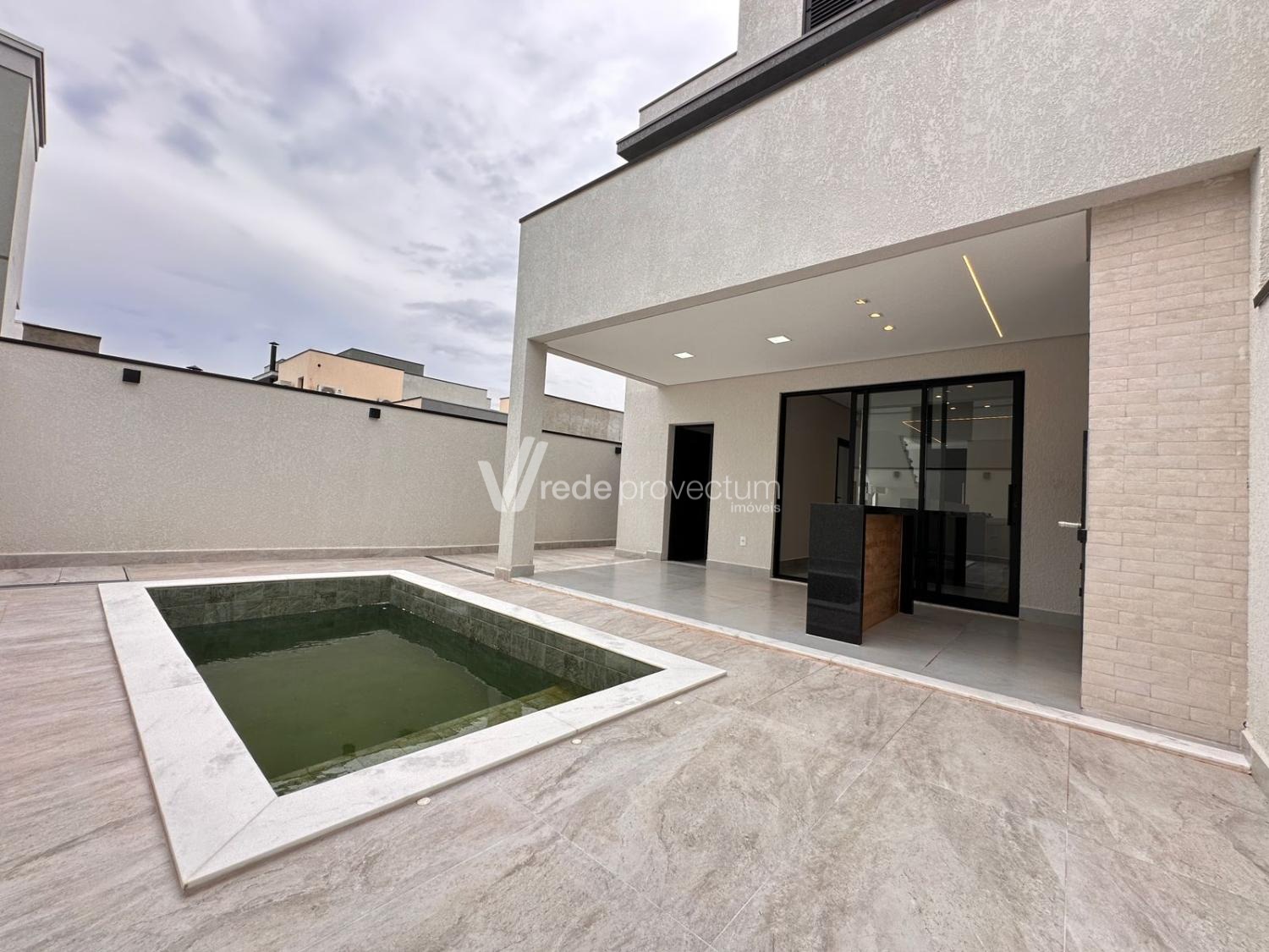 Casa à venda no condomínio Terras da Estancia em Paulínia. Sobrado em condomínio fechado com projeto exclusivo e fino acabamento, com 182m² de área construída. Projeto moderno, conceito aberto, ambientes integrados, sala para 2 ambientes - TV e jantar, cozinha com ilha, rica em armários planejados, equipada com cooktop, forno e micro-ondas, cozinha integrada ao espaço gourmet, lavanderia, lavabo. No piso superior são 3 suítes, sendo 1 suíte máster com closet e sacada, todos os quartos com armários planejados, persianas automatizadas com controle, ponto para ar condicionado. Área gourmet com churrasqueira e armários planejados, com 1 banheiro completo esterno.