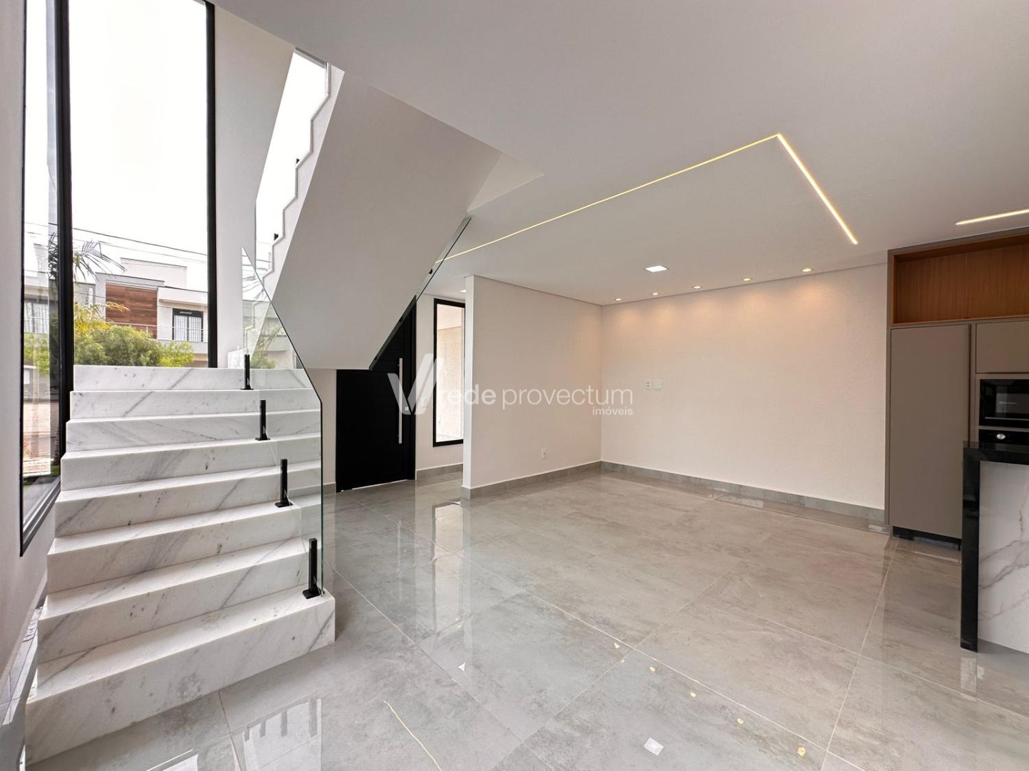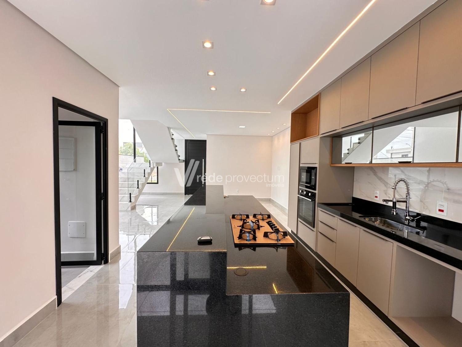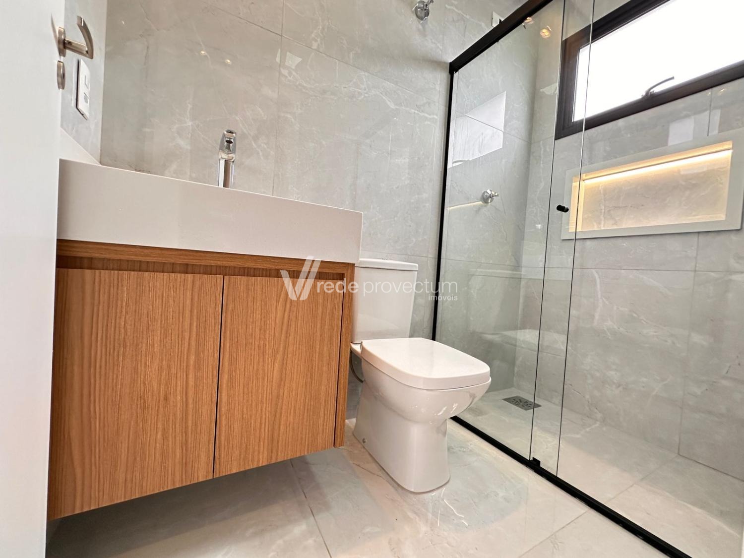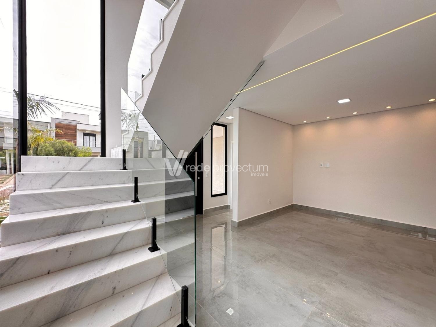 Casa à venda no condomínio Terras da Estancia em Paulínia. Sobrado em condomínio fechado com projeto exclusivo e fino acabamento, com 182m² de área construída. Projeto moderno, conceito aberto, ambientes integrados, sala para 2 ambientes - TV e jantar, cozinha com ilha, rica em armários planejados, equipada com cooktop, forno e micro-ondas, cozinha integrada ao espaço gourmet, lavanderia, lavabo. No piso superior são 3 suítes, sendo 1 suíte máster com closet e sacada, todos os quartos com armários planejados, persianas automatizadas com controle, ponto para ar condicionado. Área gourmet com churrasqueira e armários planejados, com 1 banheiro completo esterno.