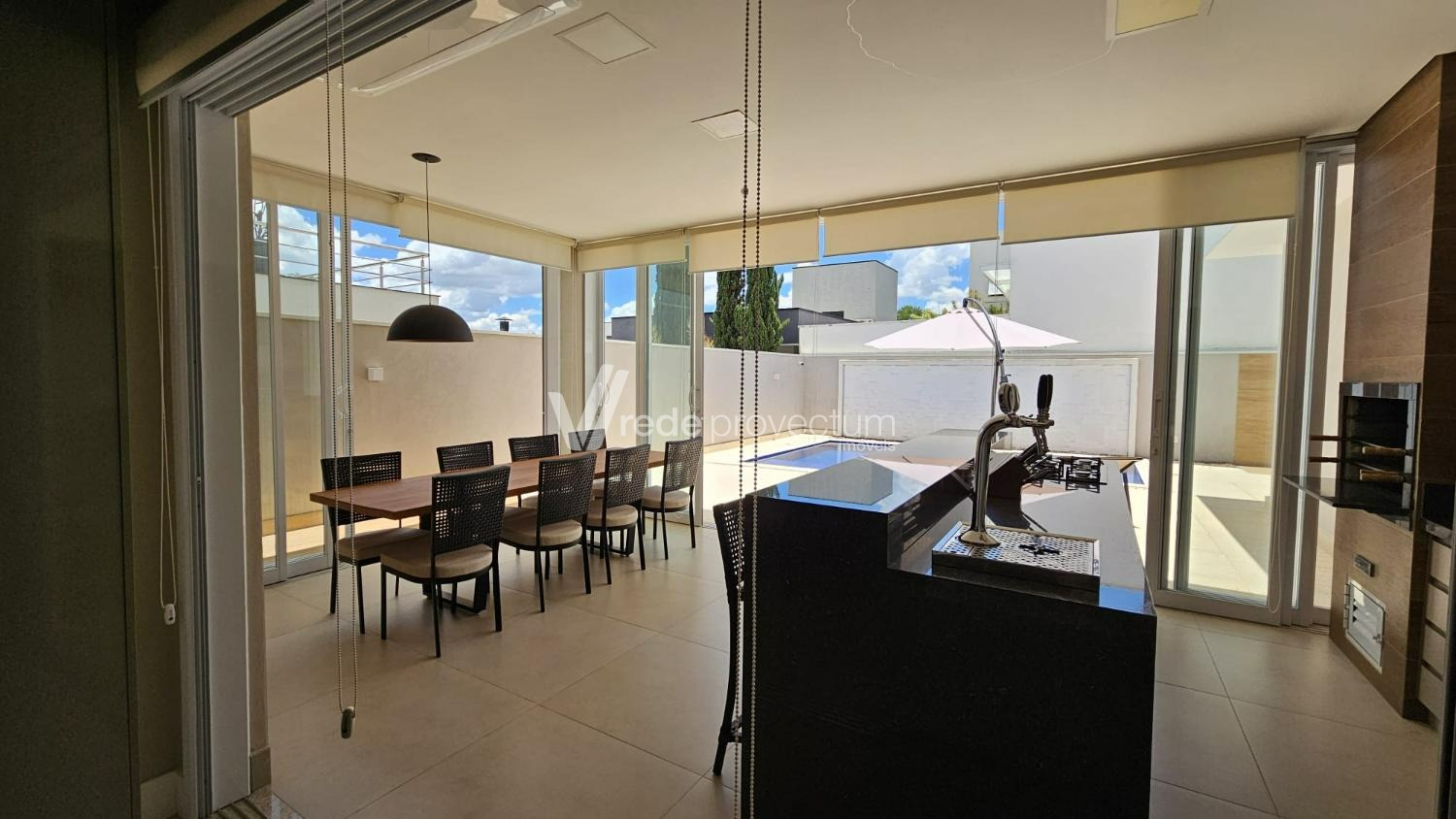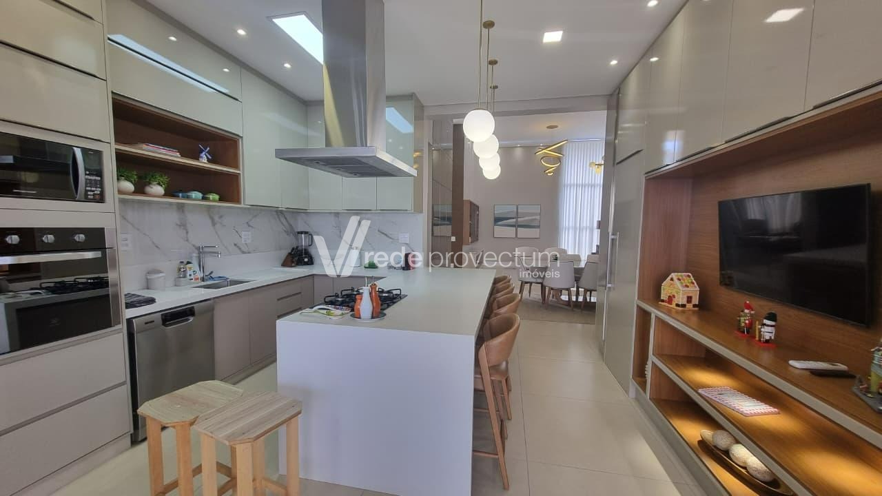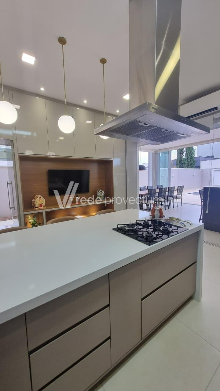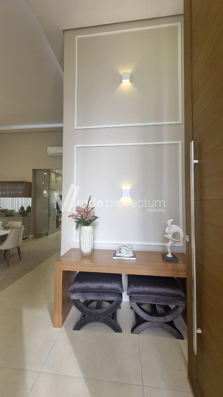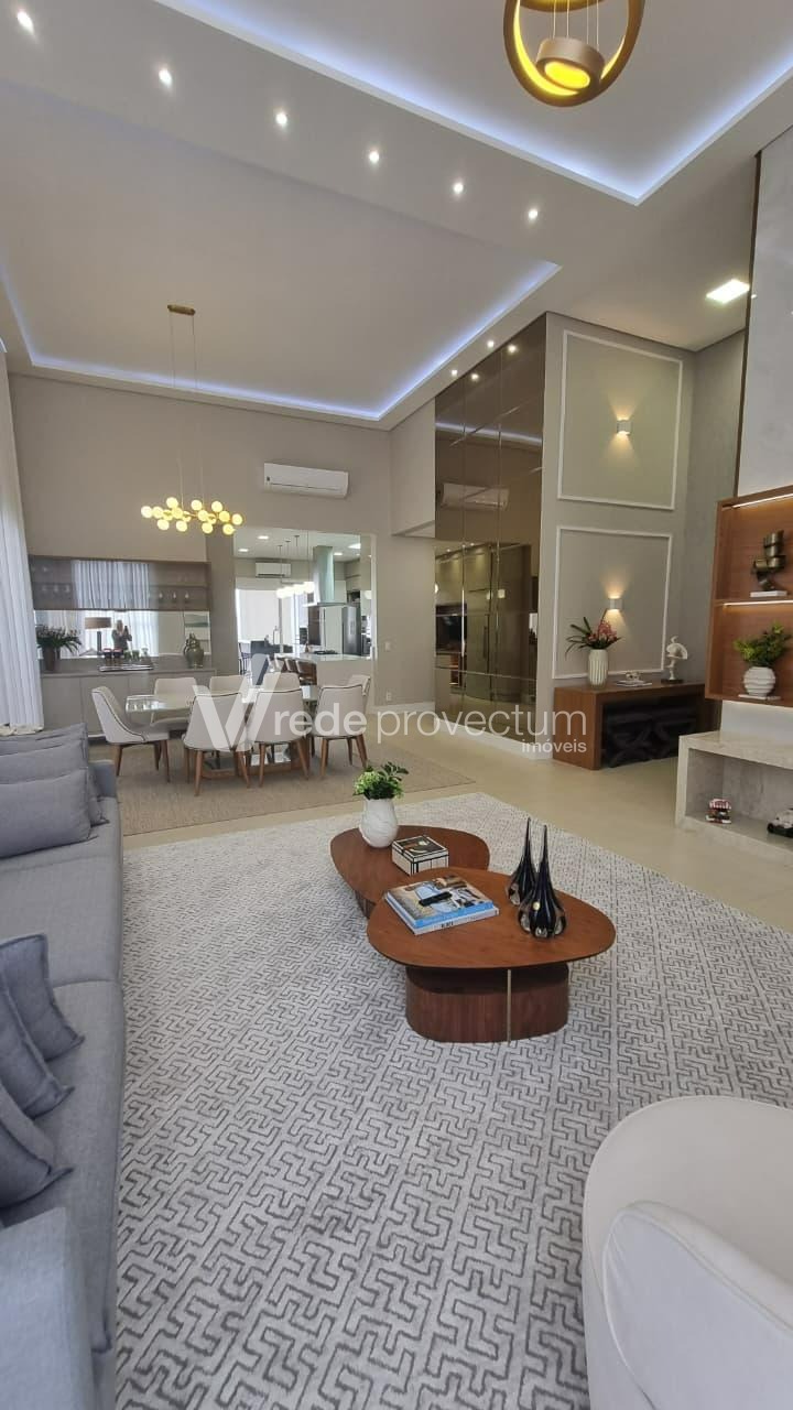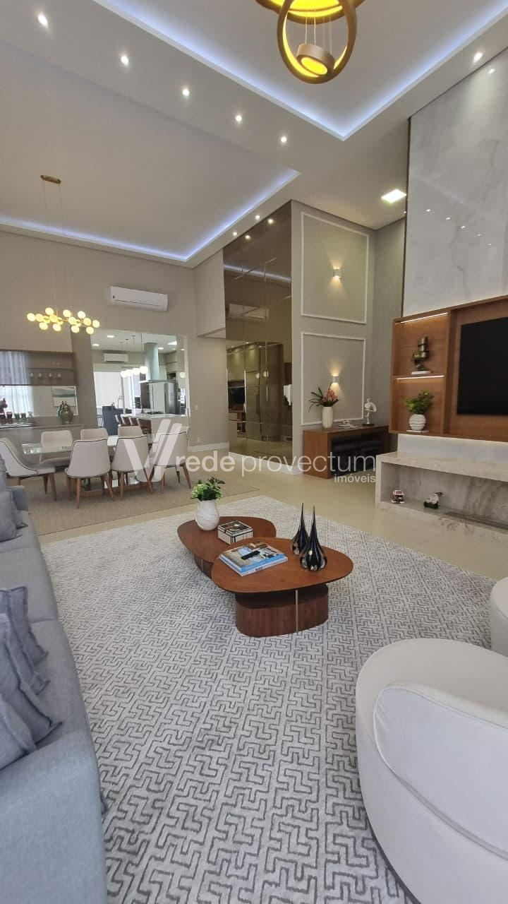Casa térrea à venda, mobiliada e decorada, no Condomínio Villa Lobos em Paulínia, S/P. Acabamento impecável, mobília requintada e elegante, eletrodomésticos modernos e de alto padrão, móveis planejados em todos os ambientes. Conta com salas integradas, projeto de iluminação funcional e decorativo em LED, aparelhos de ar-condicionado e pontos de TVs nas suítes, salas, cozinha e área gourmet, piscina; fireplace, sistema de câmera de monitoramento, conforto e sofisticação pensados em cada detalhe - São 3 suítes com janelas automatizadas, sendo 1 com closet, lavabo, amplo living com lareira, pé-direito duplo, integrado à sala de jantar, cozinha planejada e totalmente equipada com eletrodomésticos modernos, lavanderia e banheiro de apoio. A área gourmet dispõe de churrasqueira e chopeira de 2 vias. Possui filtro de água nas torneiras da cozinha e área gourmet. Área externa conta com piscina com hidromassagem e iluminação, além de fireplace. Garagem para 4 automóveis. A casa possui infraestrutura preparada para carregamento de veículos elétricos e instalação de sistema fotovoltaico. Agende sua visita e encante-se! Rede Provectum.