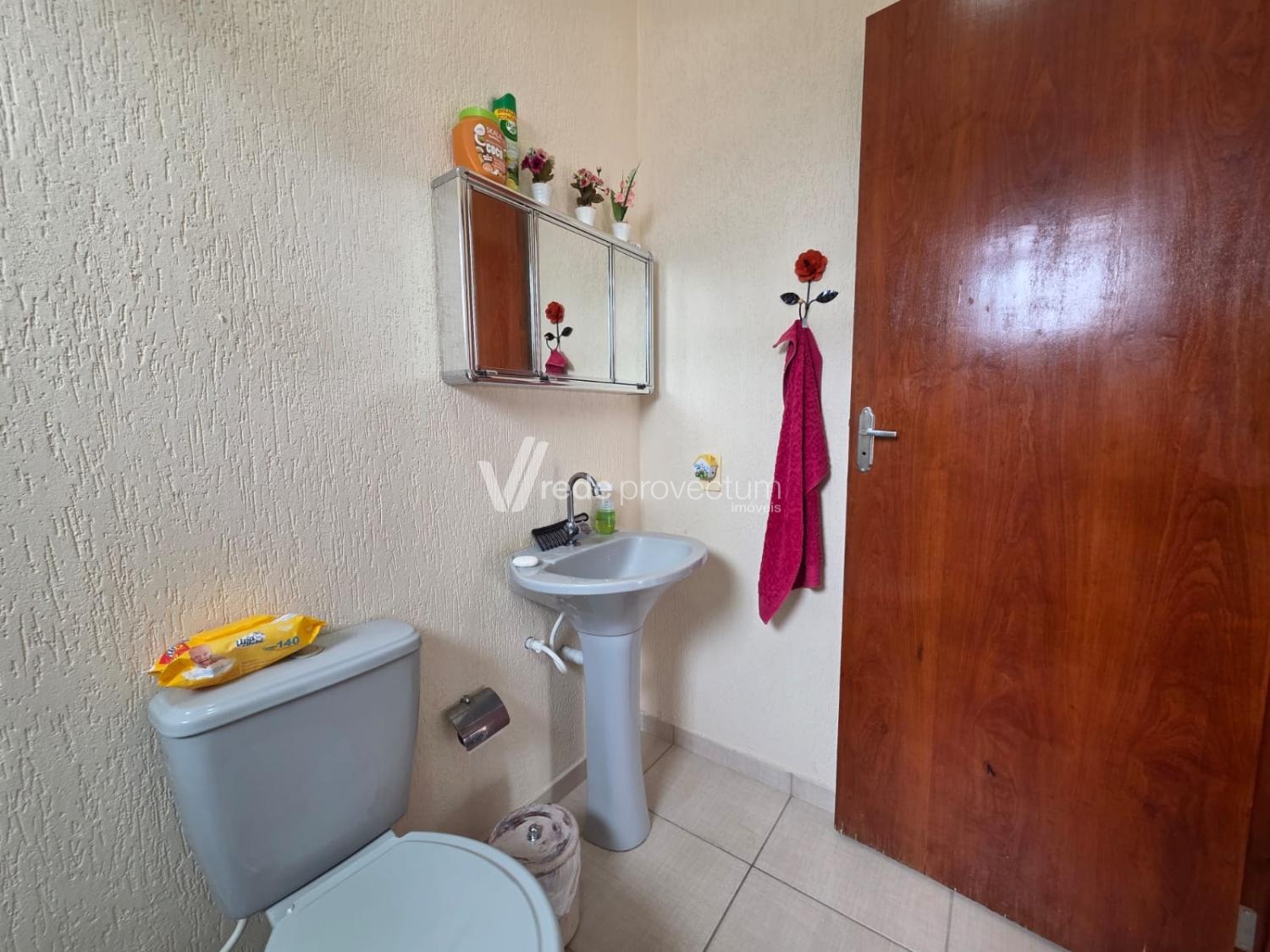 O imóvel conta com 2 dormitórios, ambos com varanda e um dos dormitórios com ventilador de teto. Possui 1 banheiro social com box em blindex e lavabo.
