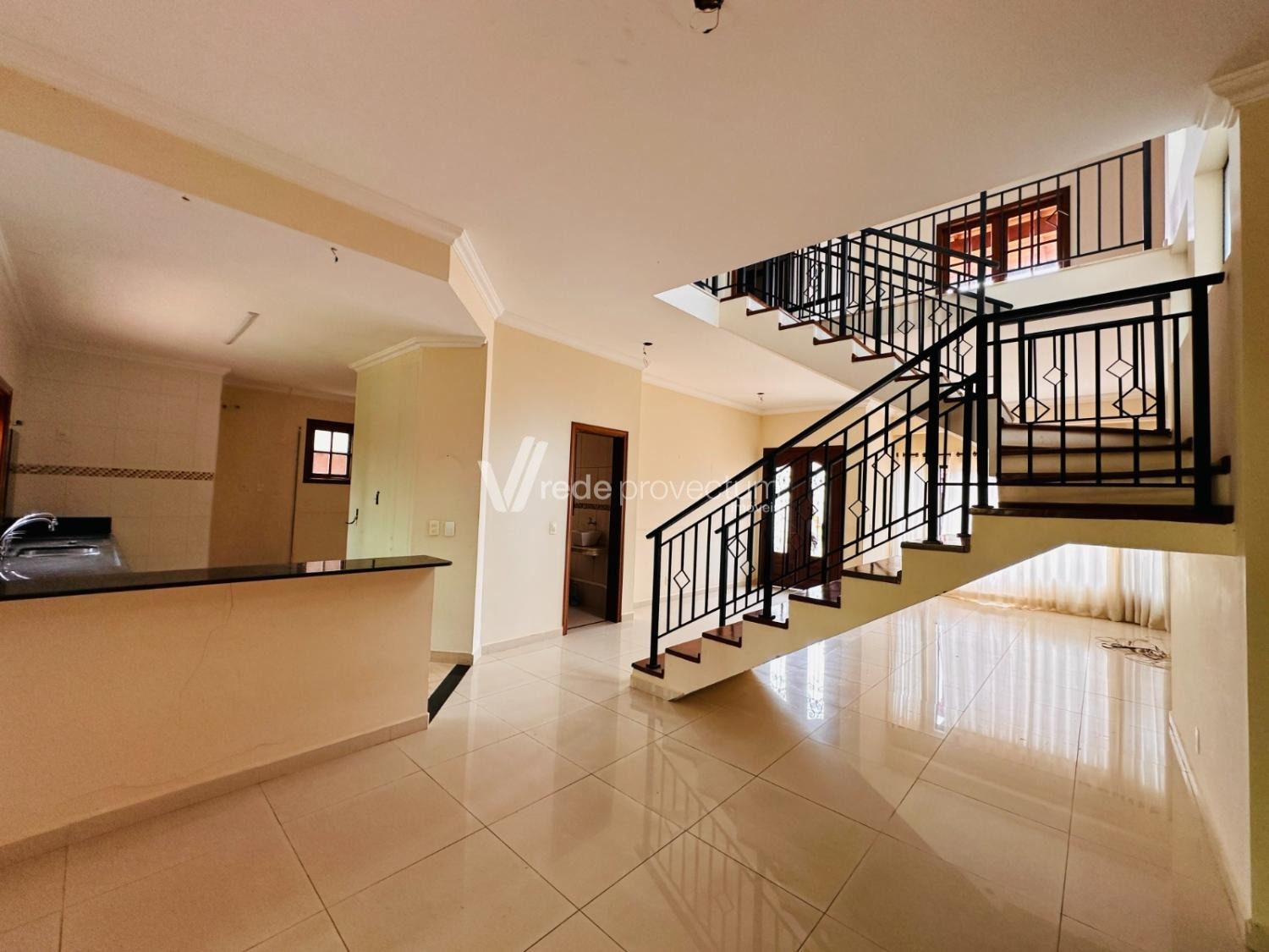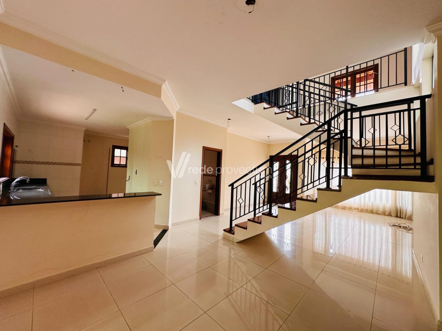 Casa à venda no condomínio Okinawa. Possui um excelente acabamento, sala para 2 ambientes, lavabo, cozinha com despensa e área de serviço.