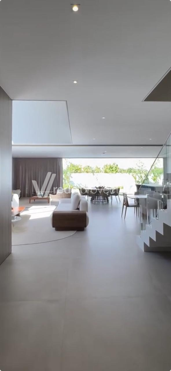 Casa nova semi-mobiliada à venda no Alphaville Campinas, com alto padrão de acabamento, pronta para morar.São 4 suítes planejadas completas, sendo 2 com closet e a suíte master com closet duplo e hidro.Escritório no térreo com banheiro completo que pode ser revertido na 5ª suíte.Living muito amplo com espaço para 3 ambientes, totalmente integrado à cozinha e maravilhoso espaço gourmet.Esses ambientes tem a possibilidade de isolamento, proporcionando uma total versatilidade de layout dos ambientes.Quintal com piscina, ampla área de sol, gramado, espaço para sauna e banheiro do lazer.Conta com dependência completa de empregada, ampla área de serviço, despensa, garagem para 4 carros cobertos e 4 descobertos. Além de tomada para carro elétrico.Fachada frontal e fundos com Brise retrátil em alumínio, aquecimento solar com energia fotovoltaica, ar-condicionado instalado em todos os cômodos, sistema de automação (luz, som e câmaras).Imóvel com acabamento primoroso, porcelanato Portobello, louças Docol. A cozinha e espaço gourmet tem louças e pia Koller.Venha desfrutar dessa moradia espetacular num condomínio com o melhor sistema de lazer da cidade, com todo o conforto que sua família merece.