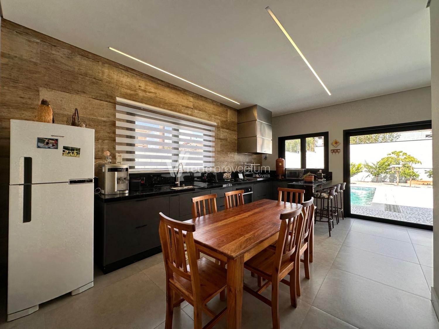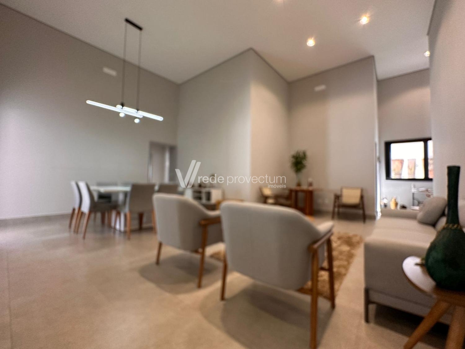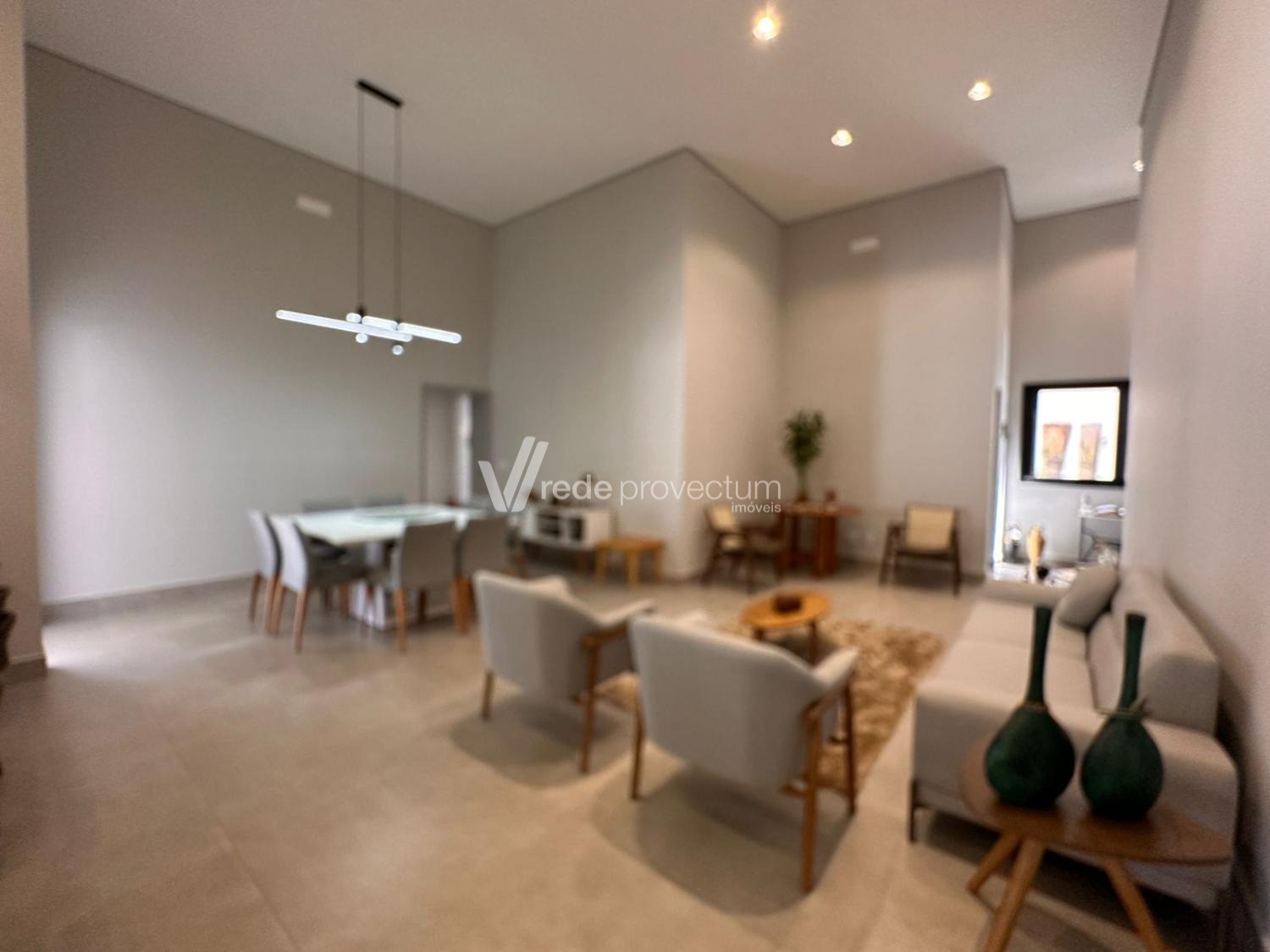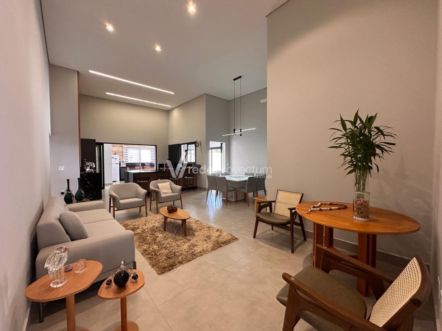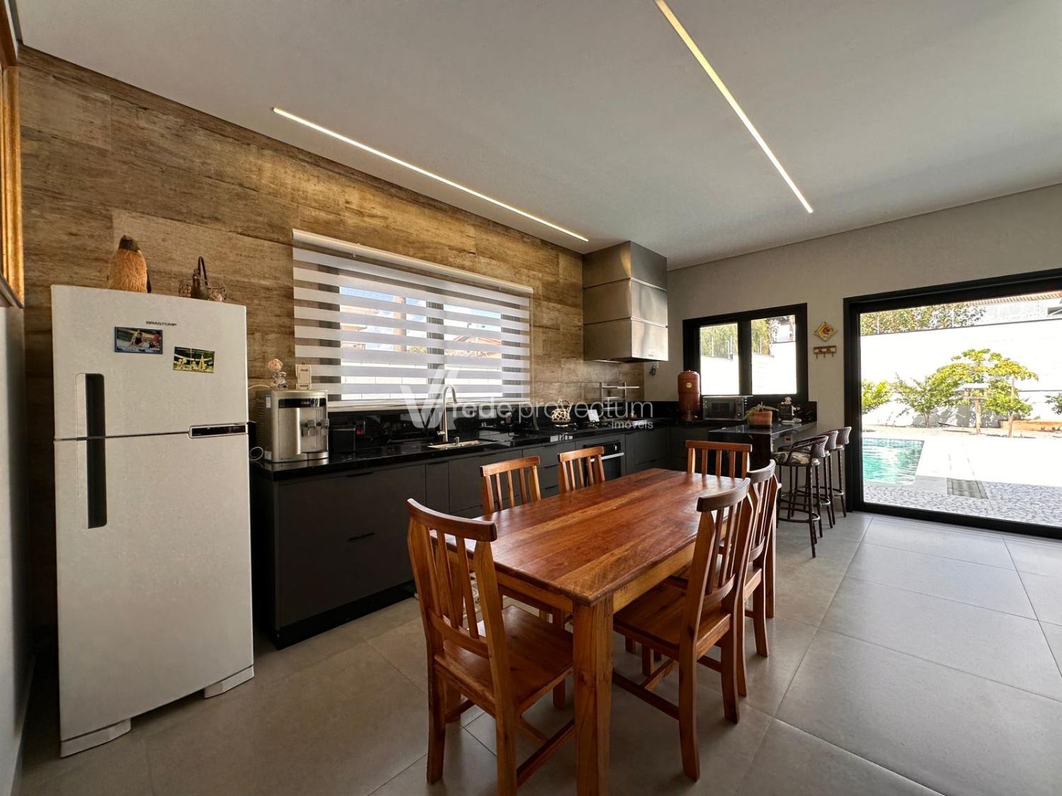 Casa térrea, com 3 suítes amplas, sendo que o quarto do casal possui suíte com closet, todas com persianas automatizadas, lavabo, sala de estar e jantar integrados a cozinha rica em armários planejados, área gourmet com churrasqueira e armários planejados, despensa, lavanderia. Piscina aquecida. Aquecimento solar.