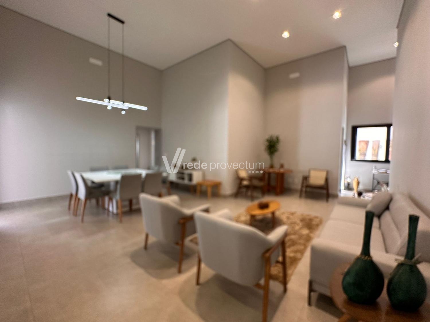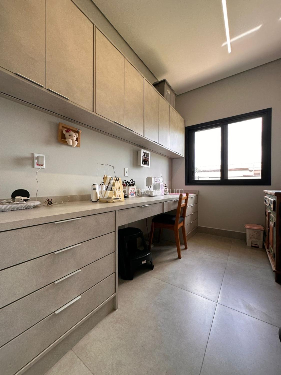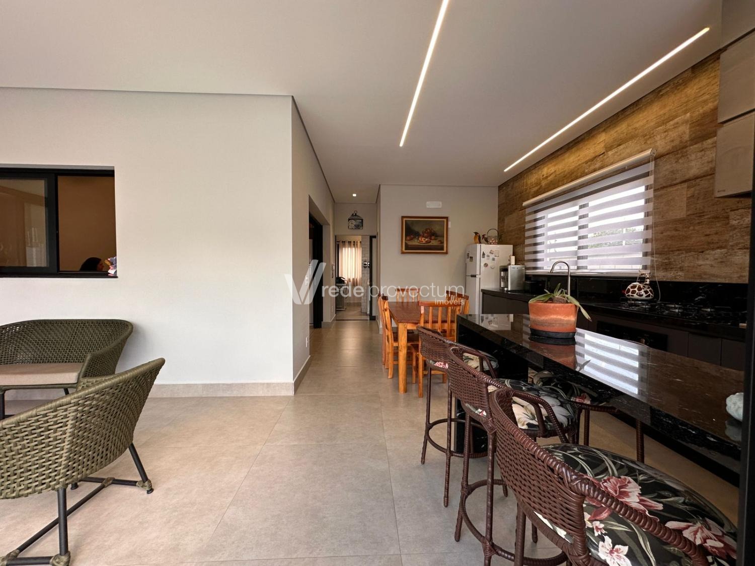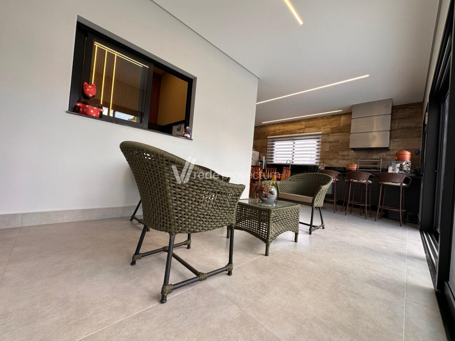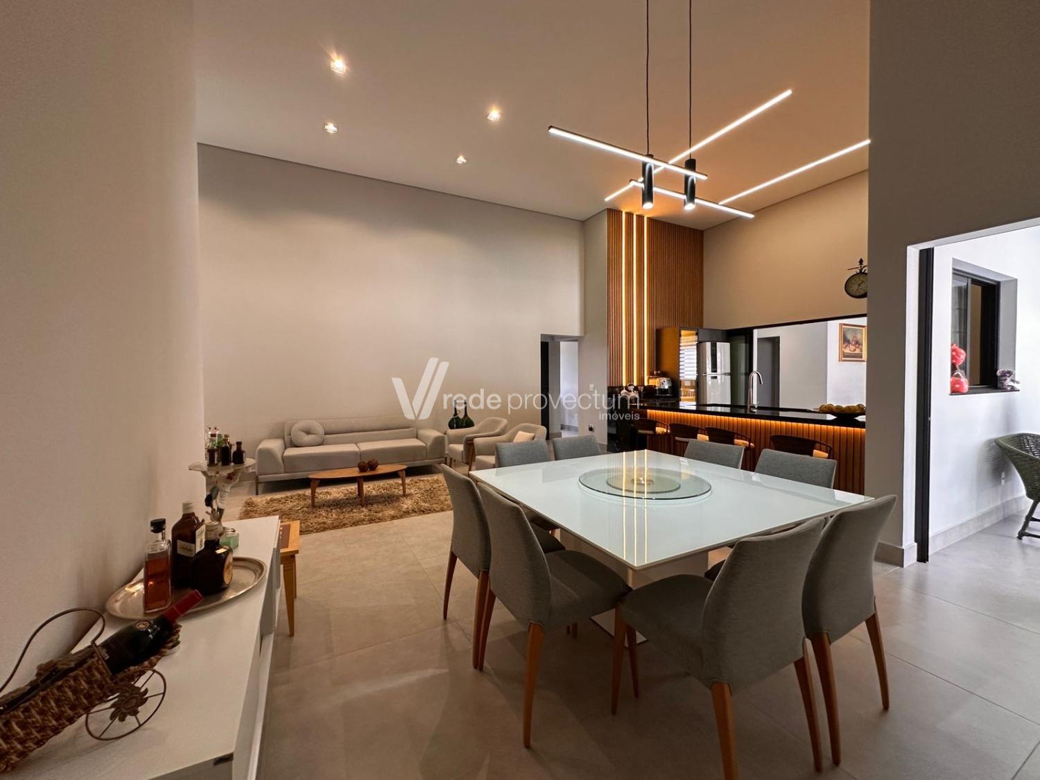 Casa térrea, com 3 suítes amplas, sendo que o quarto do casal possui suíte com closet, todas com persianas automatizadas, lavabo, sala de estar e jantar integrados a cozinha rica em armários planejados, área gourmet com churrasqueira e armários planejados, despensa, lavanderia. Piscina aquecida. Aquecimento solar.