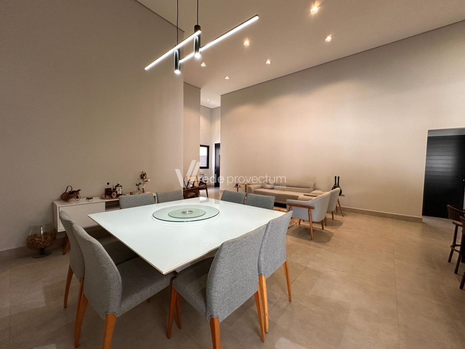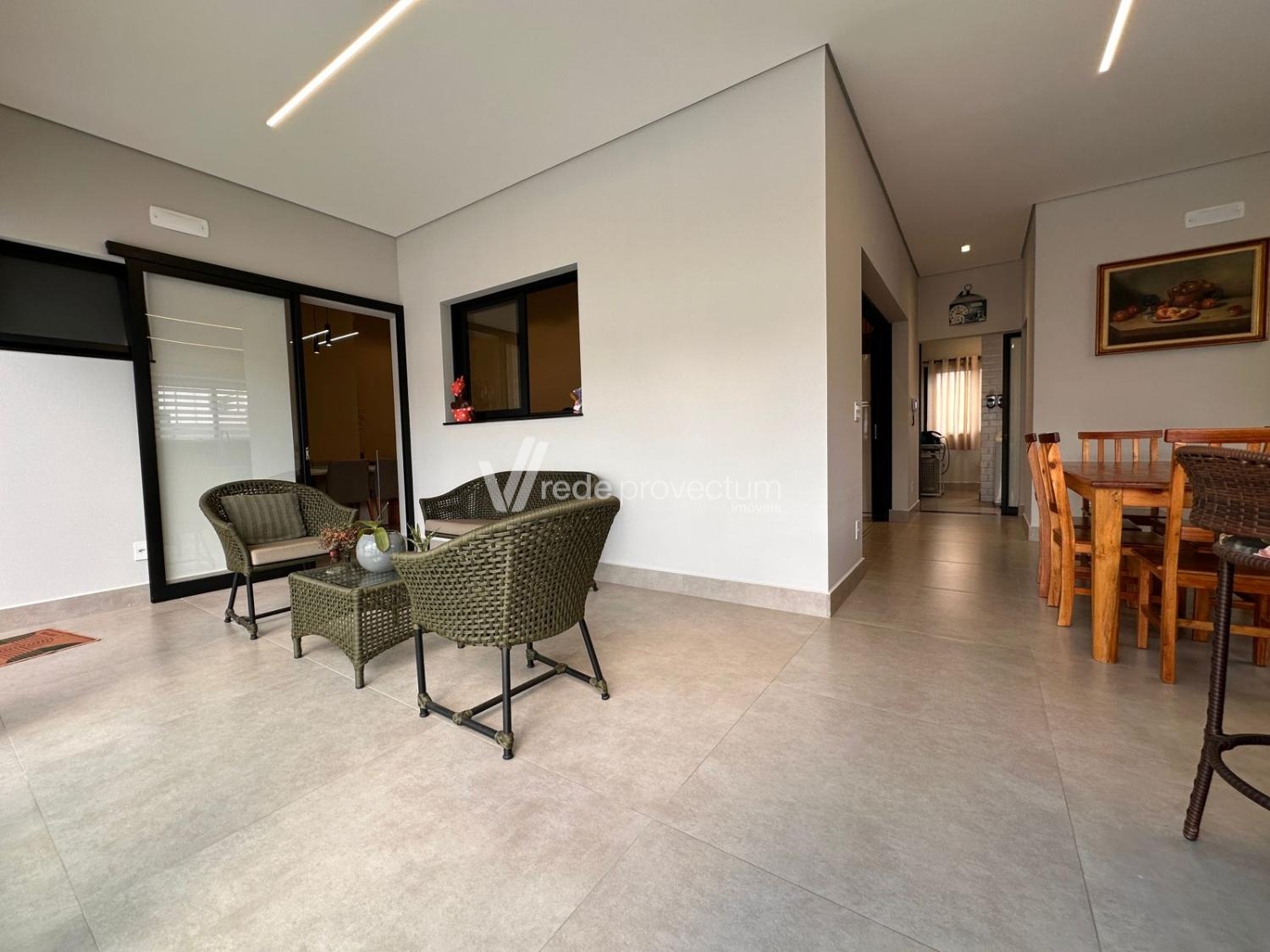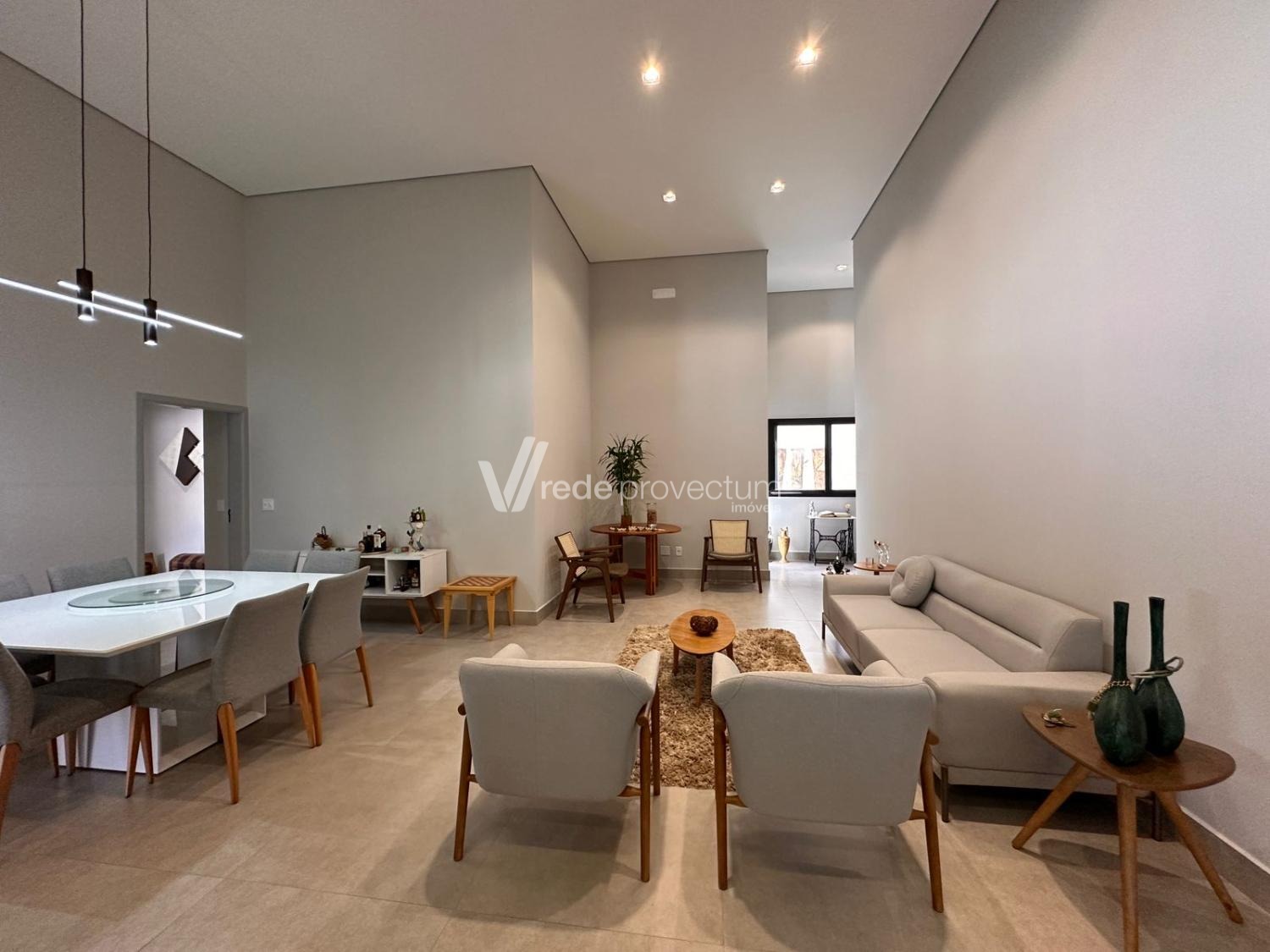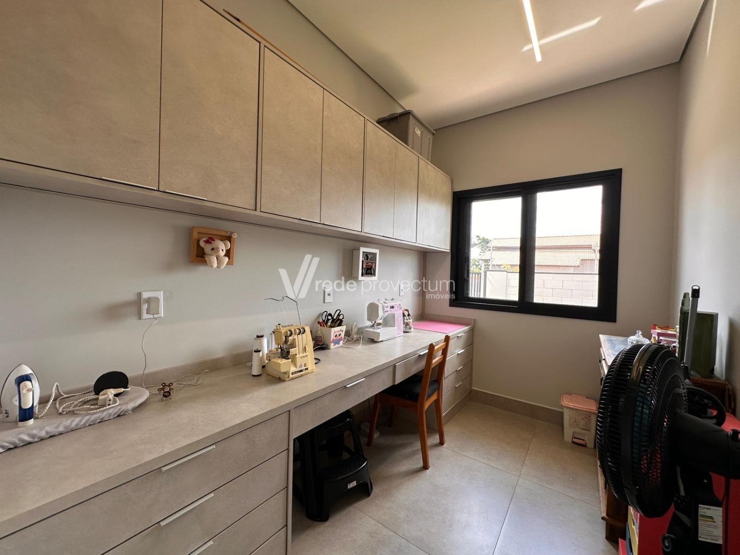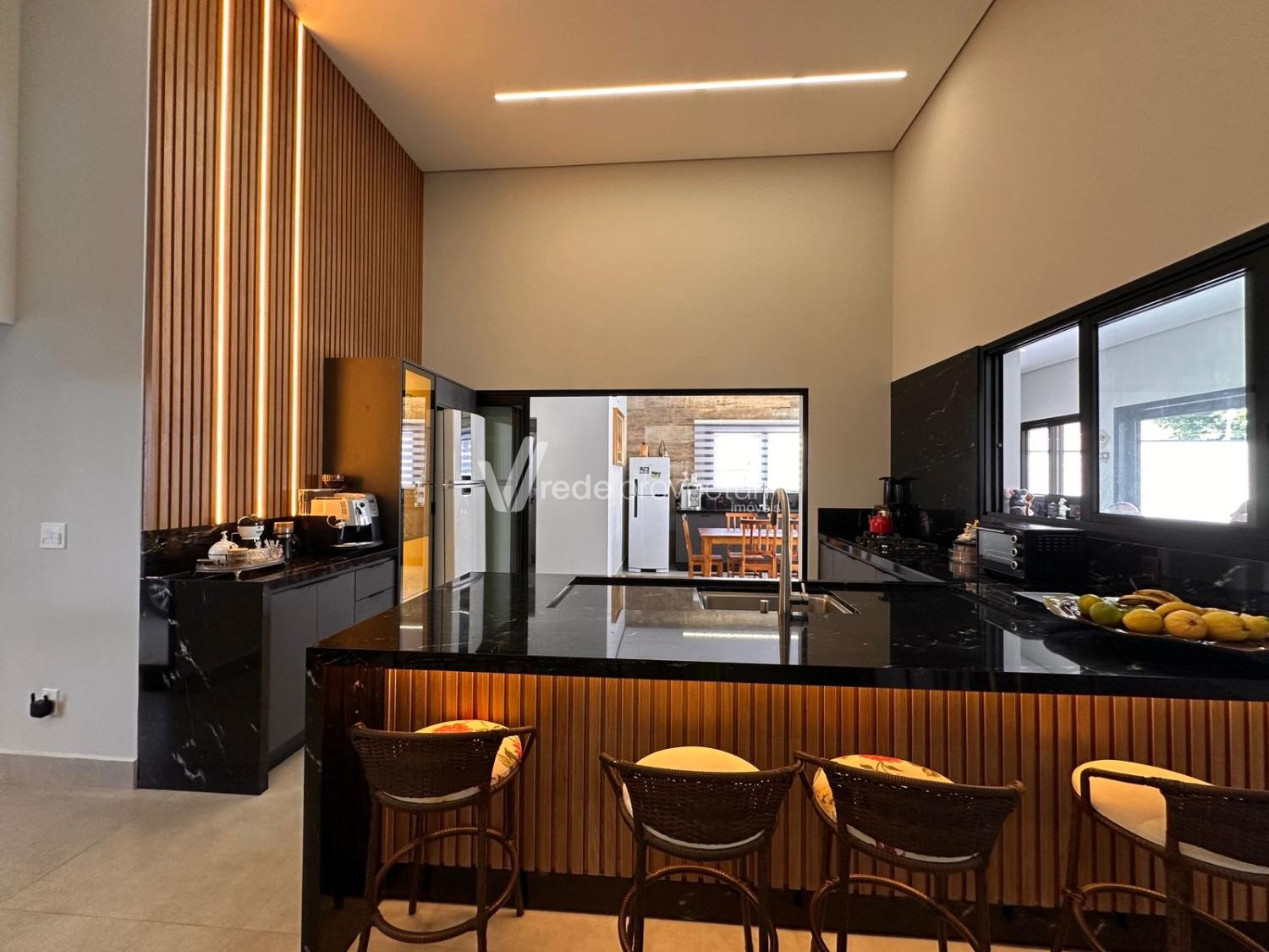 Casa térrea, com 3 suítes amplas, sendo que o quarto do casal possui suíte com closet, todas com persianas automatizadas, lavabo, sala de estar e jantar integrados a cozinha rica em armários planejados, área gourmet com churrasqueira e armários planejados, despensa, lavanderia. Piscina aquecida. Aquecimento solar.