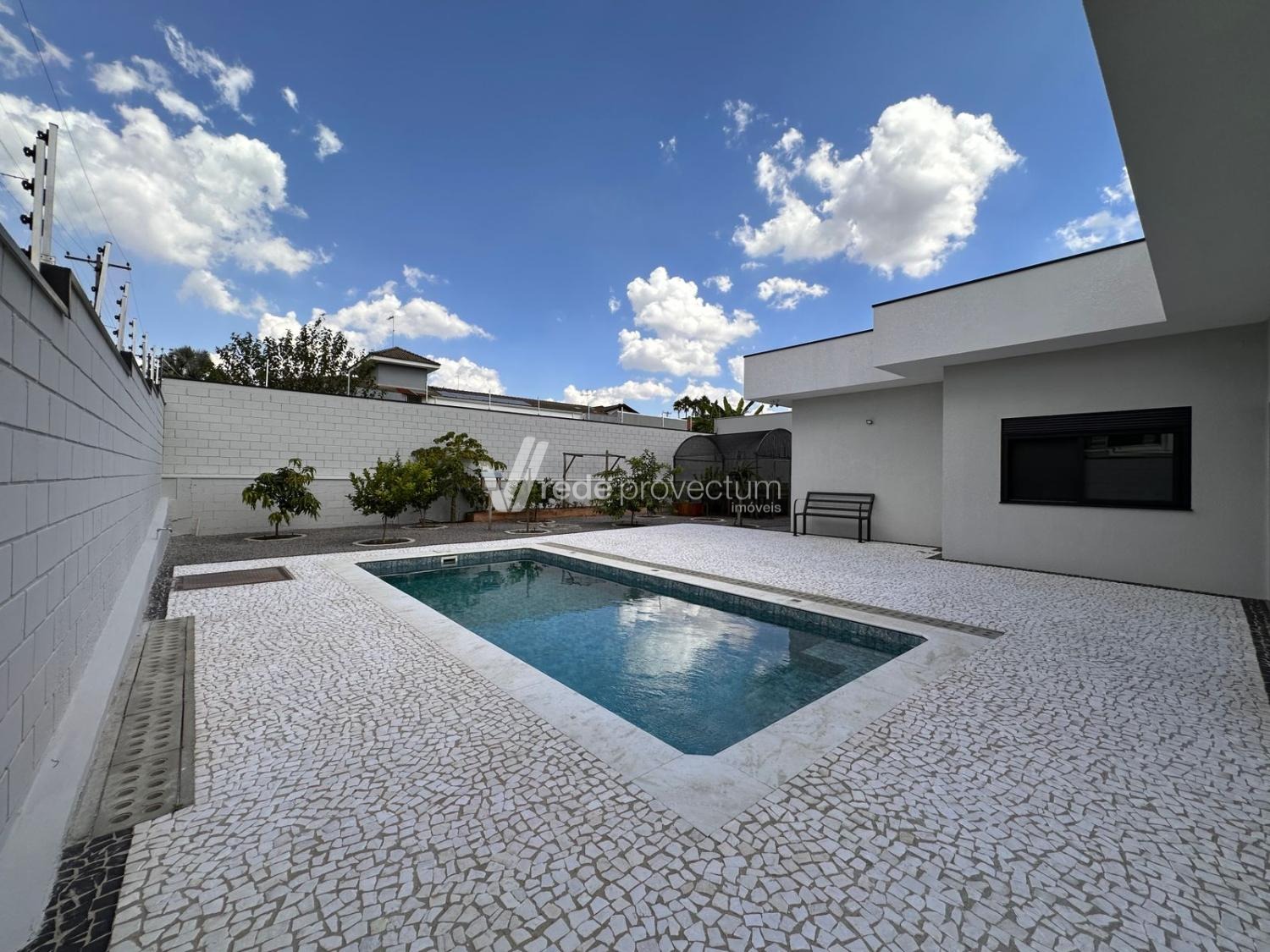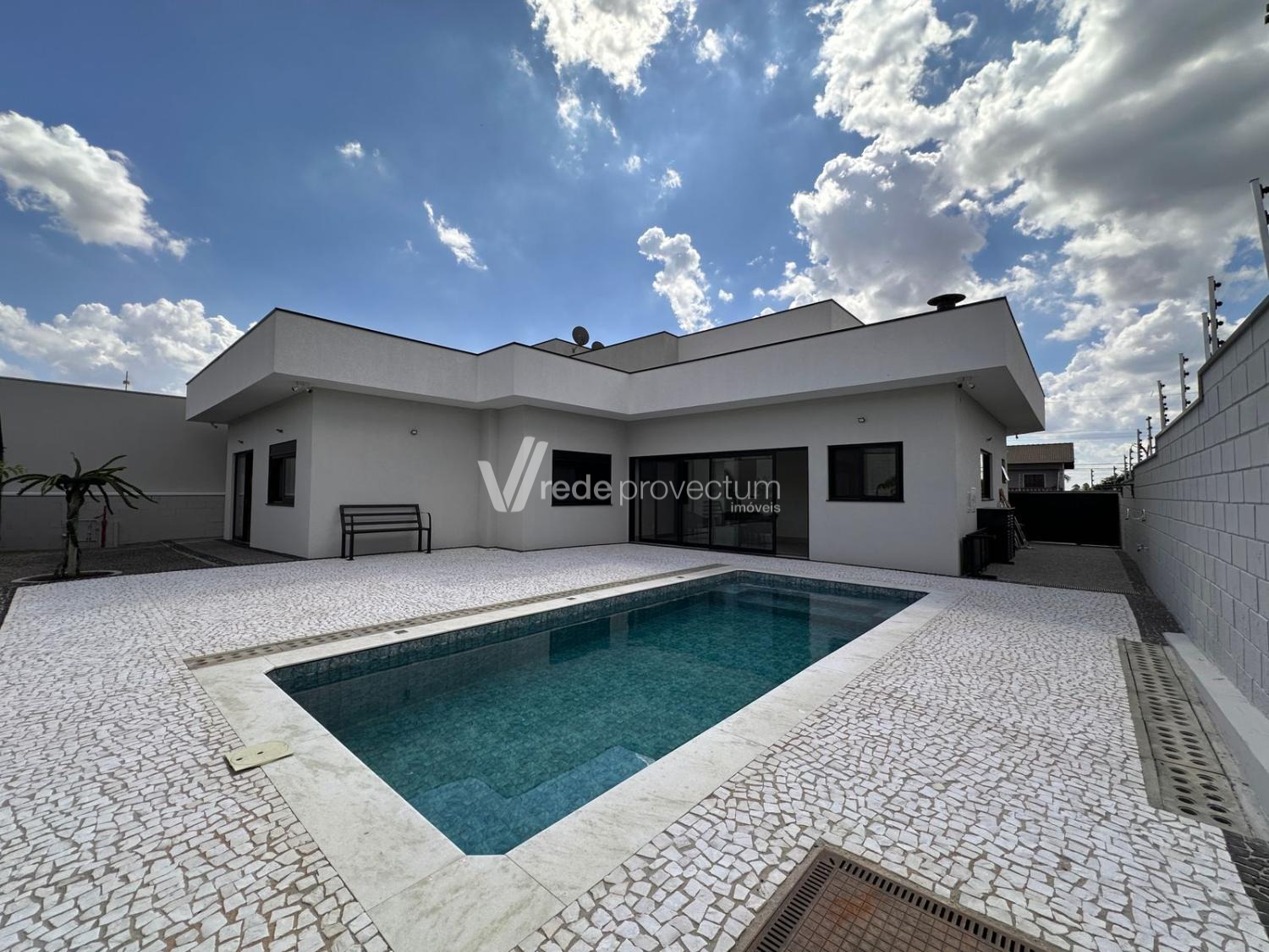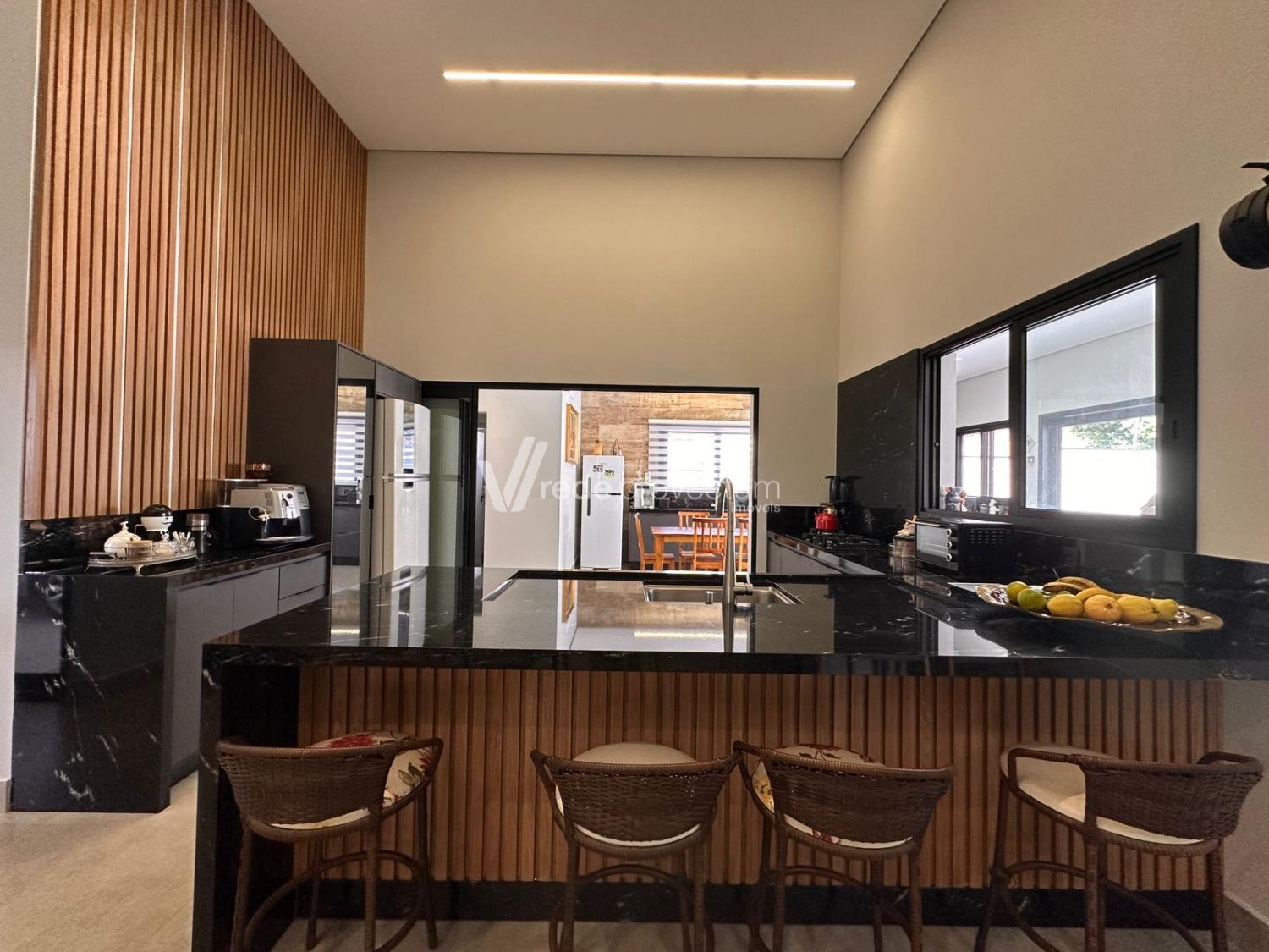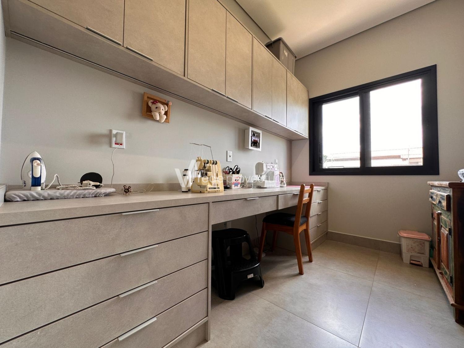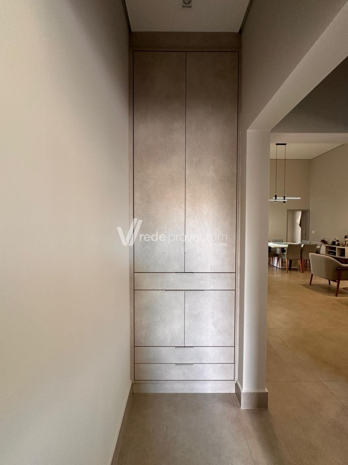 Casa térrea, com 3 suítes amplas, sendo que o quarto do casal possui suíte com closet, todas com persianas automatizadas, lavabo, sala de estar e jantar integrados a cozinha rica em armários planejados, área gourmet com churrasqueira e armários planejados, despensa, lavanderia. Piscina aquecida. Aquecimento solar.