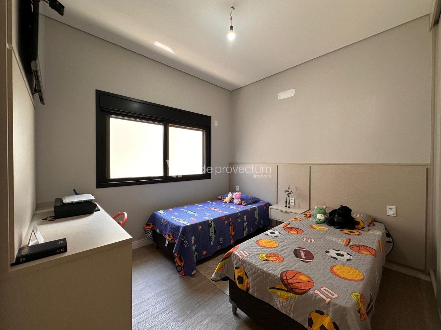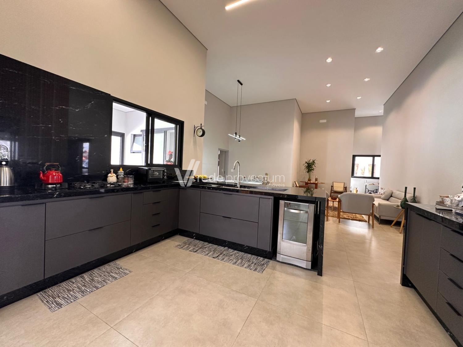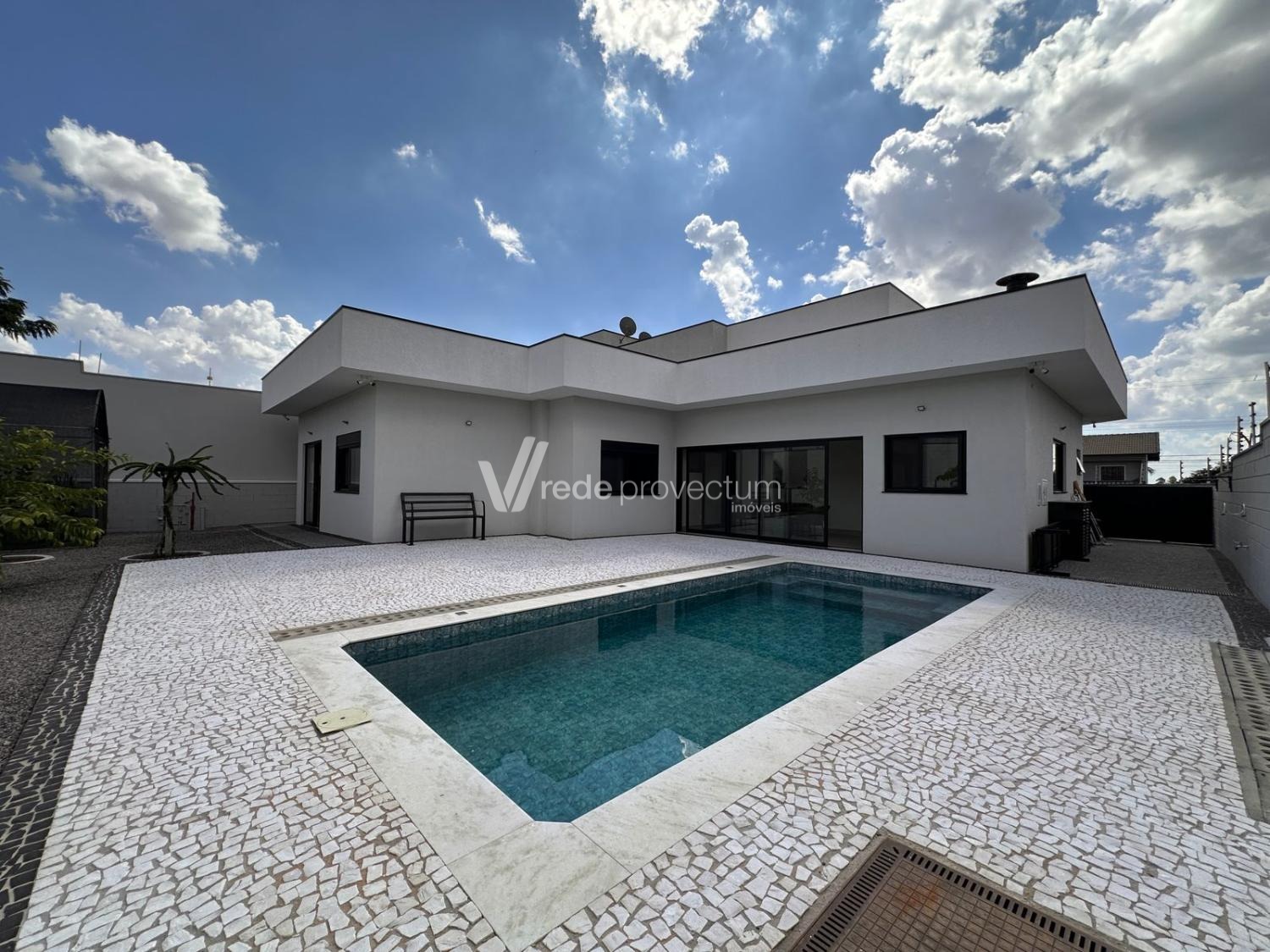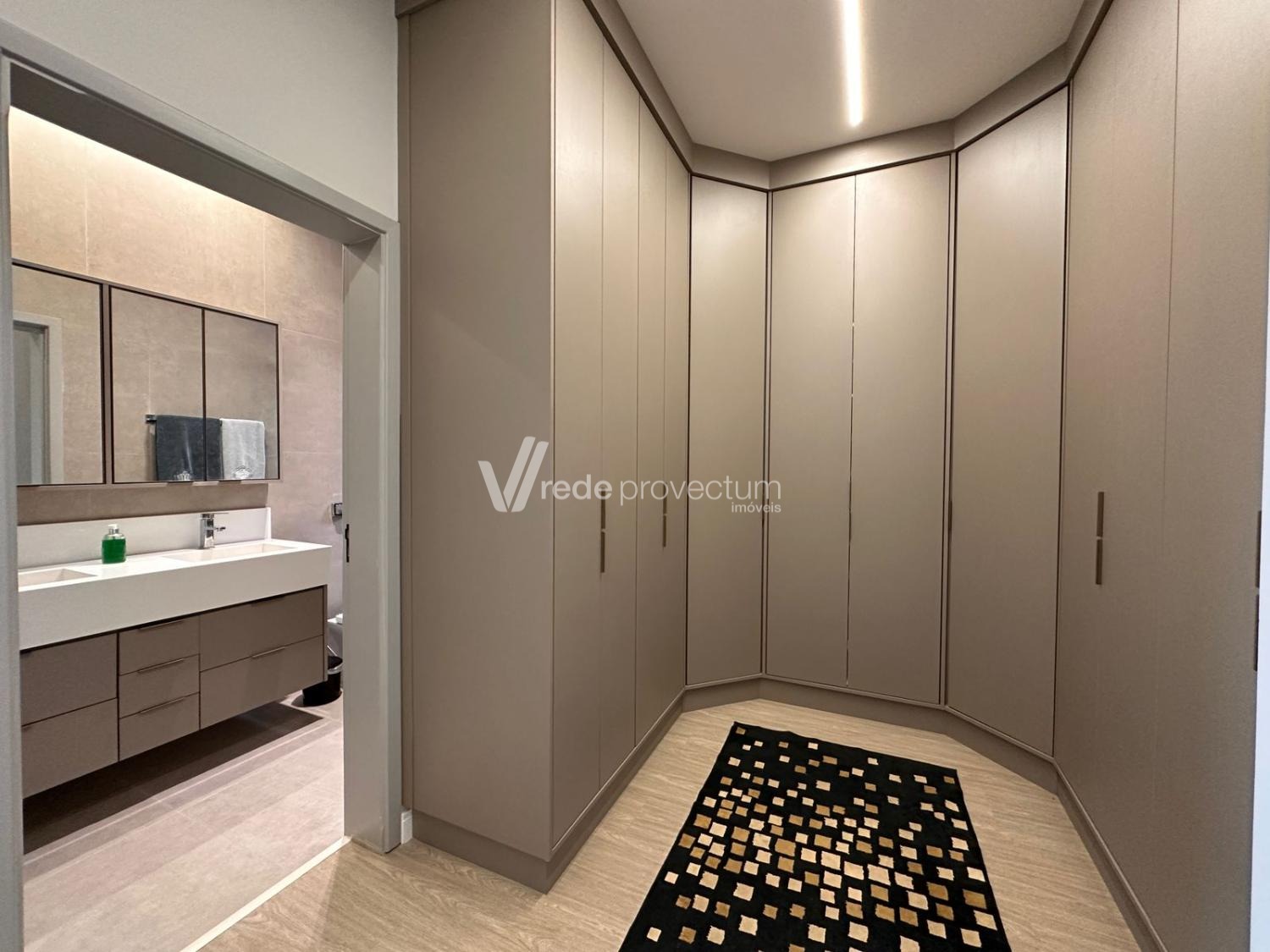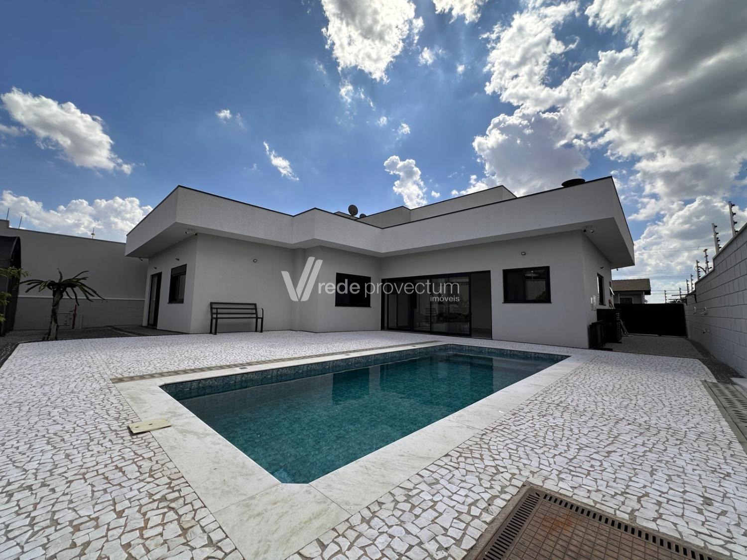 Casa térrea, com 3 suítes amplas, sendo que o quarto do casal possui suíte com closet, todas com persianas automatizadas, lavabo, sala de estar e jantar integrados a cozinha rica em armários planejados, área gourmet com churrasqueira e armários planejados, despensa, lavanderia. Piscina aquecida. Aquecimento solar.
