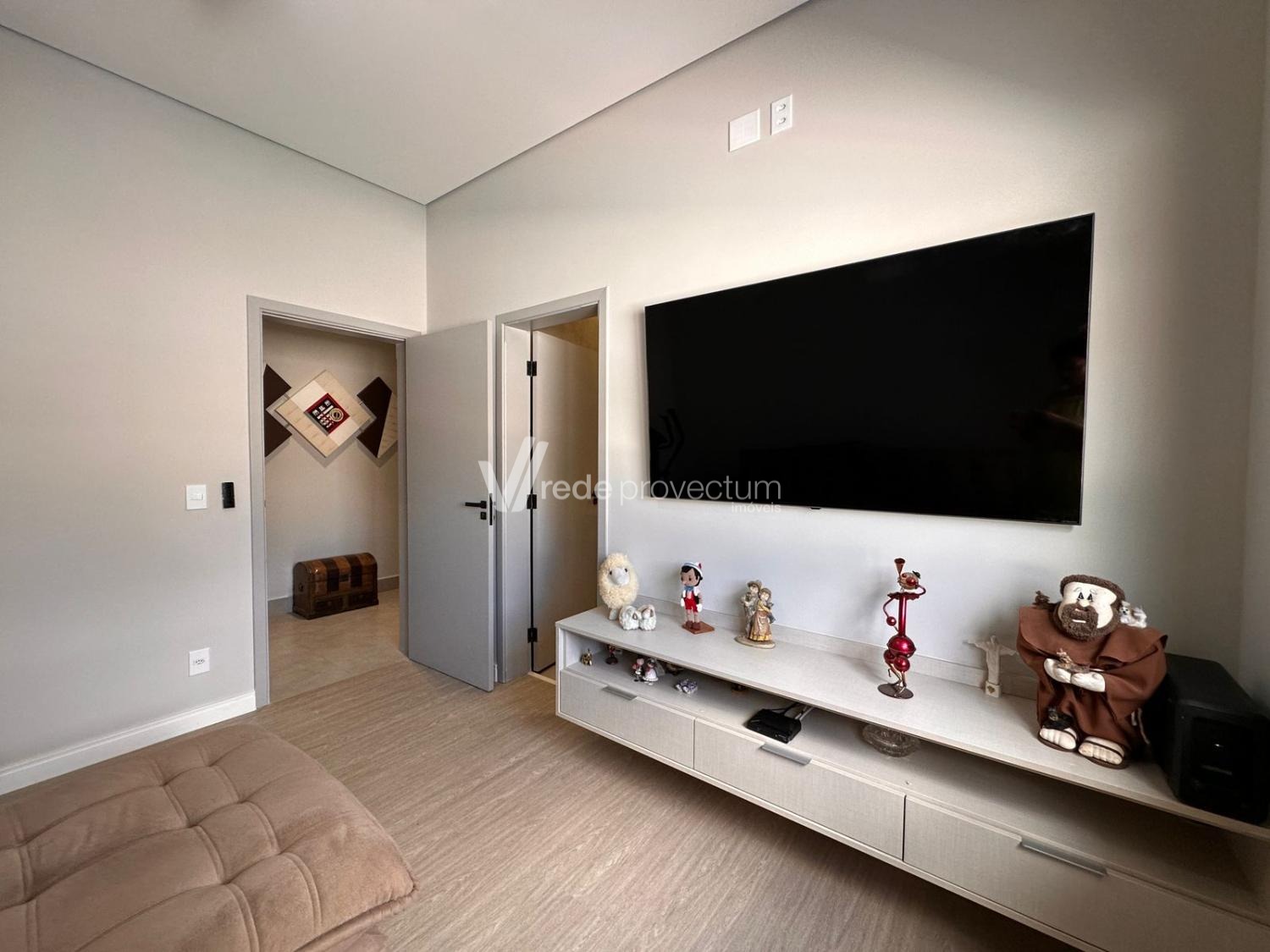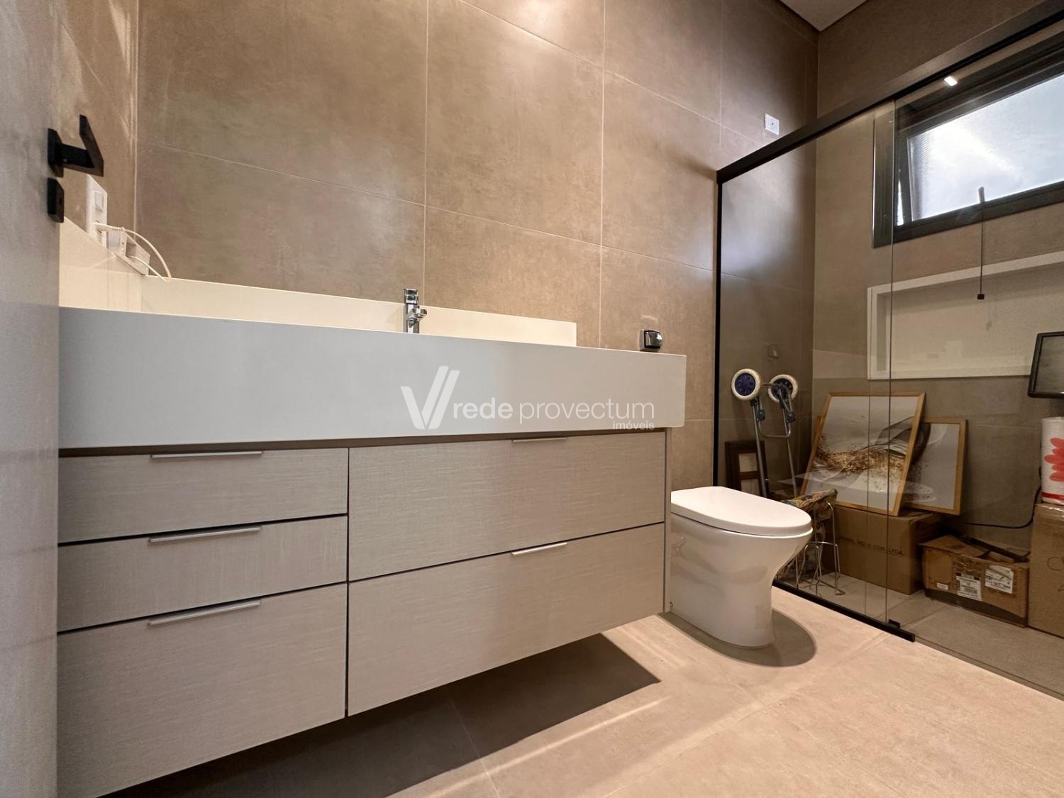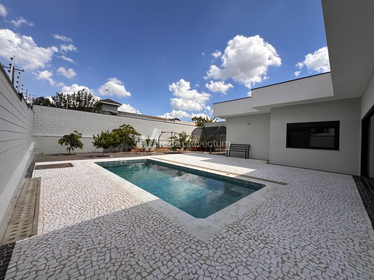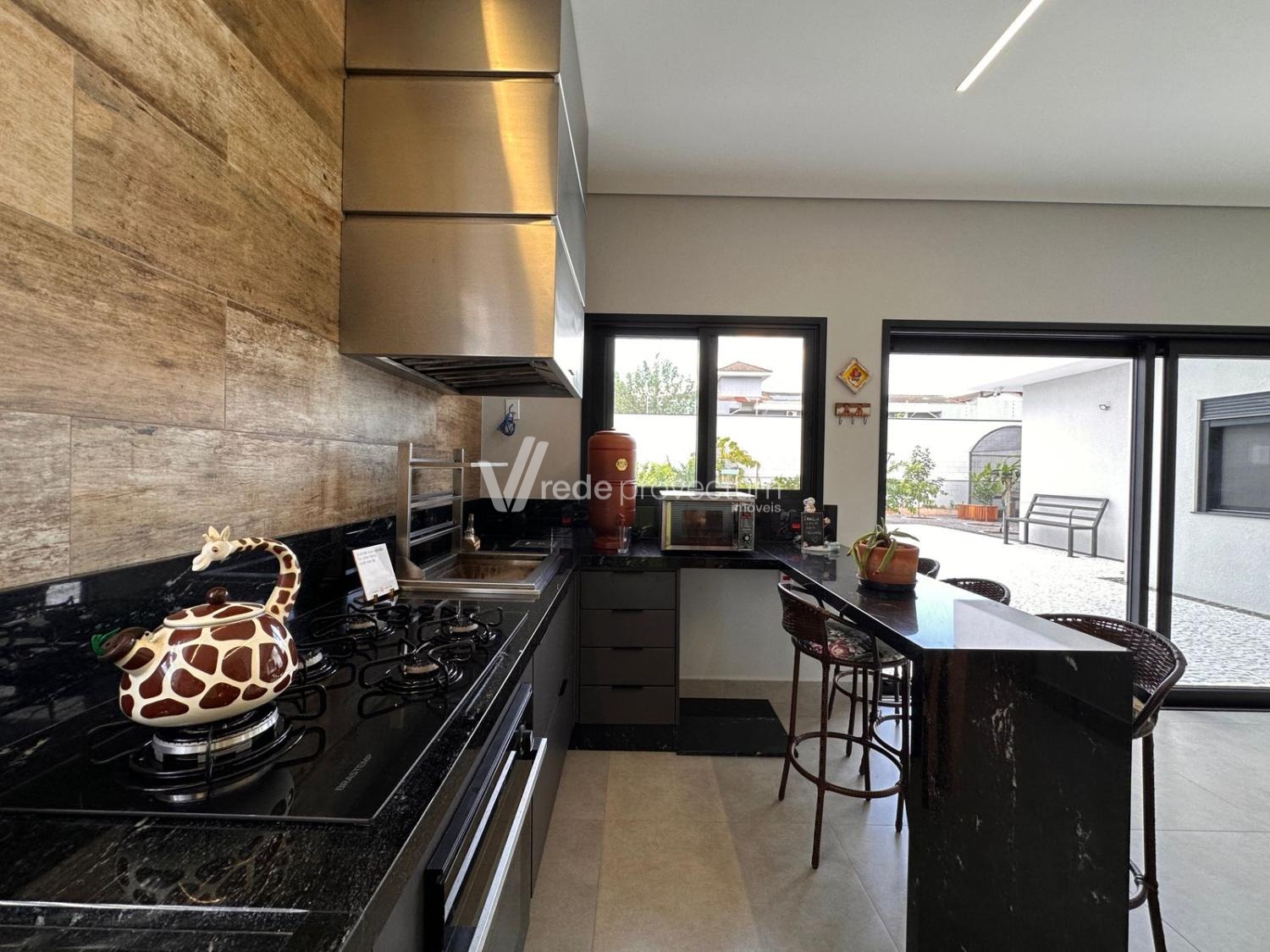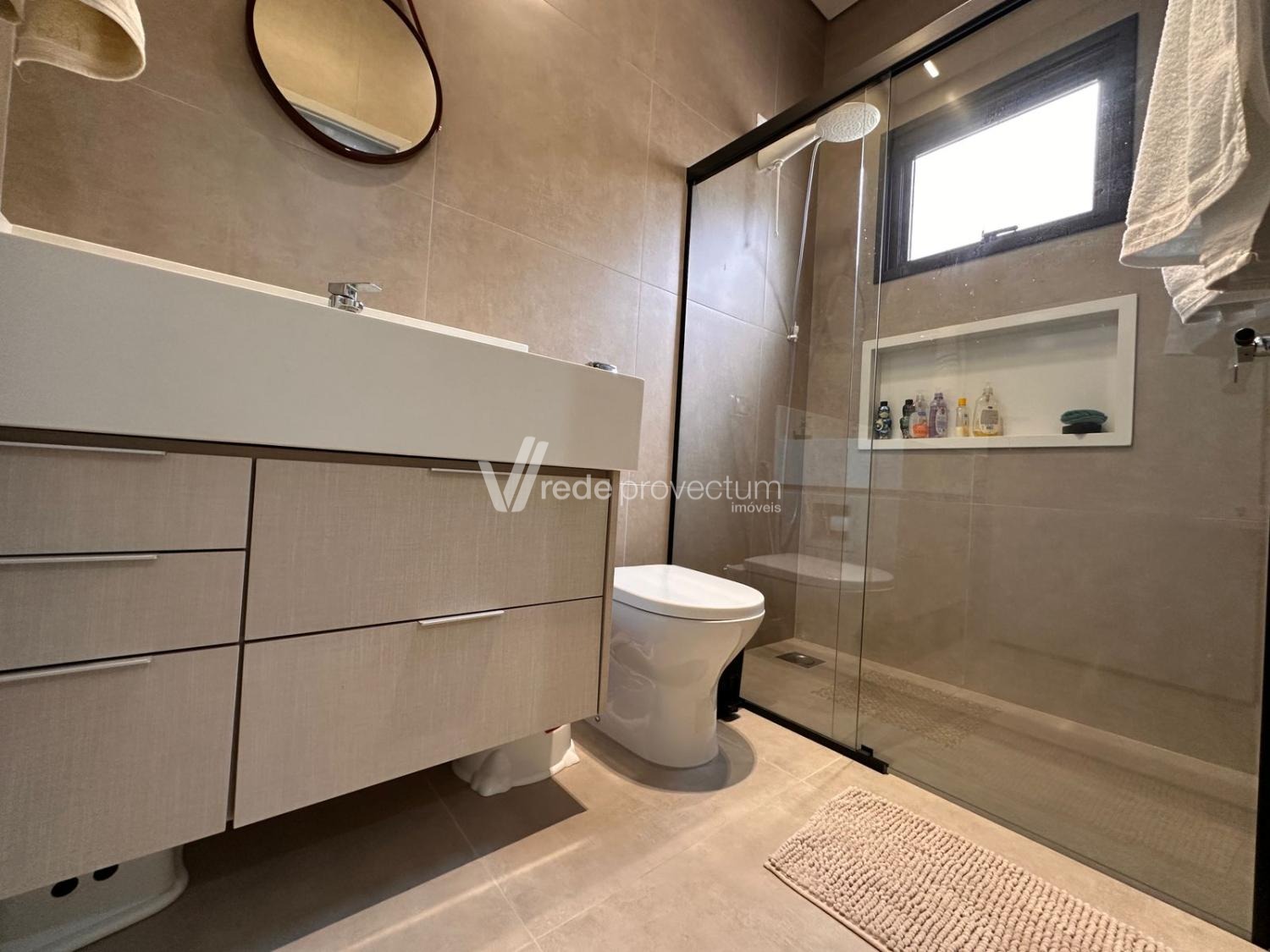 Casa térrea, com 3 suítes amplas, sendo que o quarto do casal possui suíte com closet, todas com persianas automatizadas, lavabo, sala de estar e jantar integrados a cozinha rica em armários planejados, área gourmet com churrasqueira e armários planejados, despensa, lavanderia. Piscina aquecida. Aquecimento solar.
