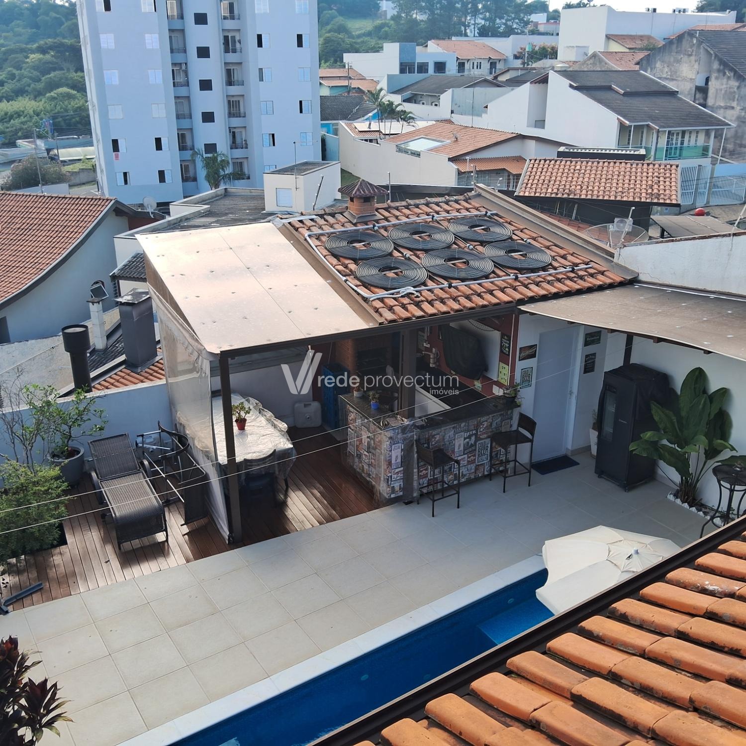 Na área externa, o destaque fica por conta do espaço gourmet com churrasqueira, deck e uma vista incrível, integrado a um amplo quintal com piscina aquecida, hidromassagem e mesa molhada, perfeito para receber amigos e aproveitar momentos de lazer com total conforto. A casa conta ainda com garagem para três carros com portão eletrônico e sistema de energia fotovoltaica, garantindo mais economia e sustentabilidade no dia a dia.