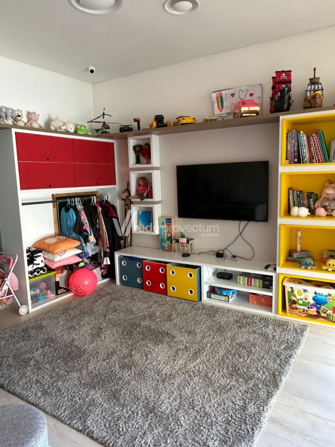 A área social é composta por três salas, ideais para receber com conforto e elegância, além de uma cozinha planejada completa em armários, funcional e conectada ao restante da casa. O imóvel conta ainda com brinquedoteca, atendendo famílias que buscam praticidade no dia a dia, e ao todo são 6 banheiros distribuídos de forma inteligente.