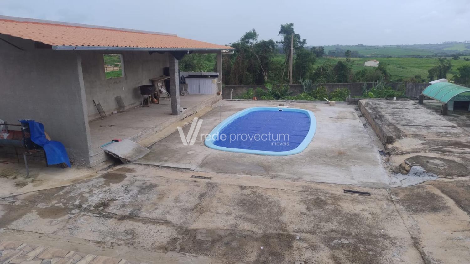 Porão embaixo da área da churrasqueira, do mesmo tamanho, ideal para depósito, oficina ou futura ampliação.Árvores frutíferas, trazendo mais verde e qualidade de vida.