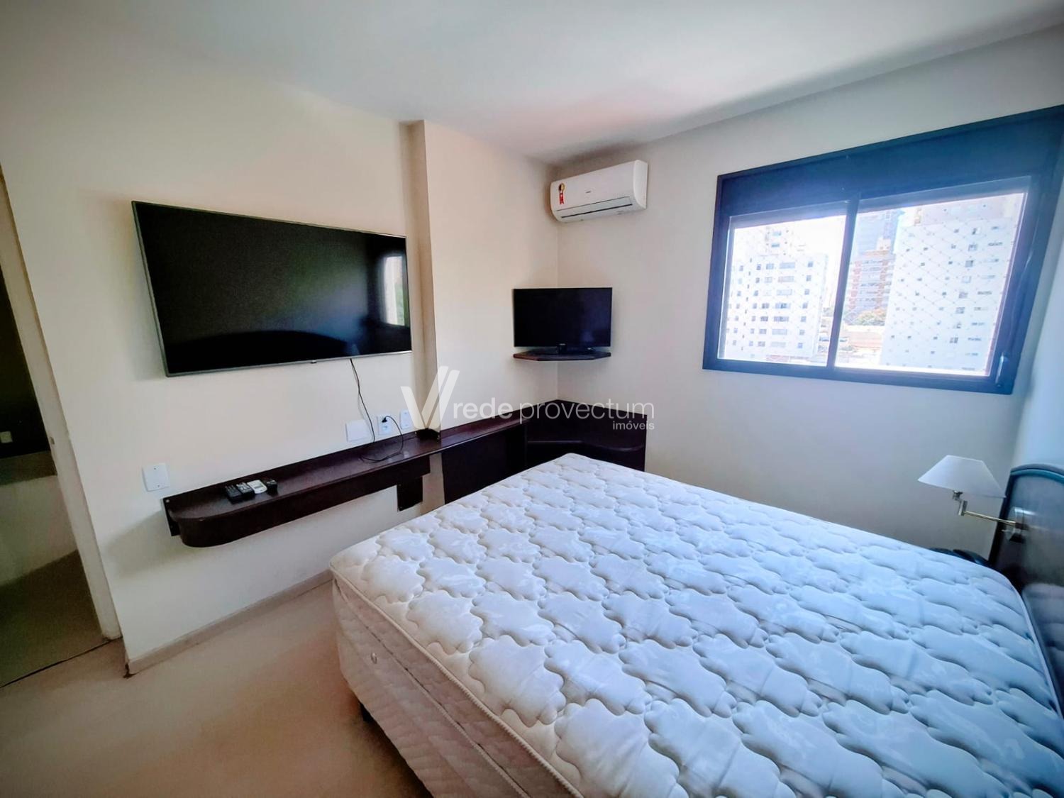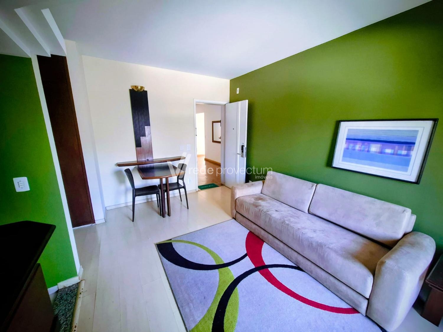 Apartamento Mobiliado à venda no Cambuí, em Campinas. Apartamento Mobiliado com 50m², sala para 2 ambientes com sofá 2 lugares, mesa com cadeiras, varanda, cozinha americana com armário, com fogão 4 bocas e geladeira. Possui 1 suíte com cama de casal, ar condicionado, armário embutido, tv led, internet e tv a cabo, inclusos no condomínio. Área de lazer com salão de festas, piscina e academia, 1 vaga de garagem coberta e portaria 24 horas. Localização excelente, região tranquila com variedades de comércio ao redor. Não perca a oportunidade! Agende a sua visita.