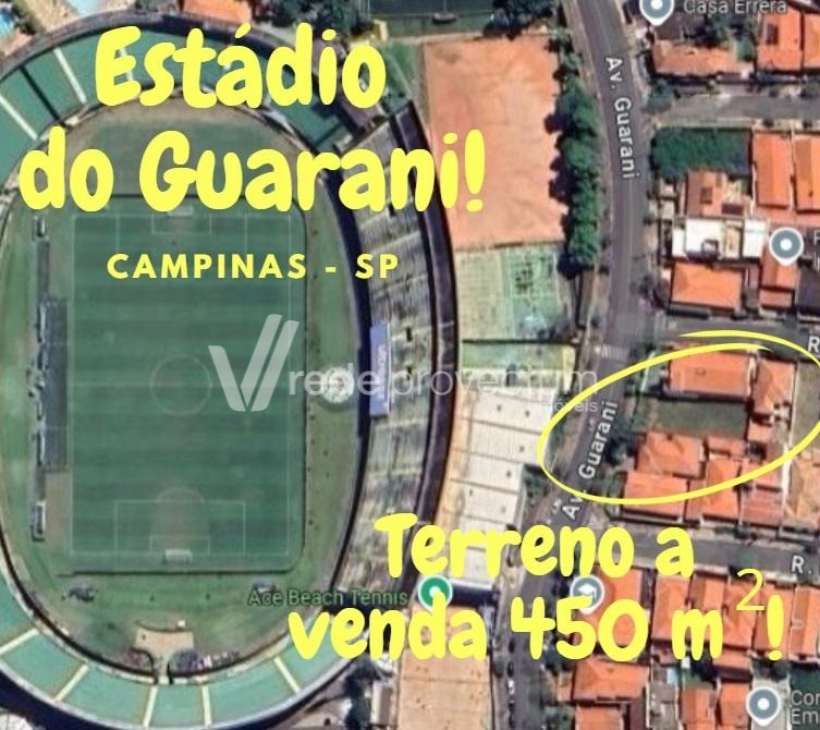 Terreno à venda em localização estratégica no Jardim Guarani, em Campinas, situado em frente à portaria do Estádio Brinco de Ouro.